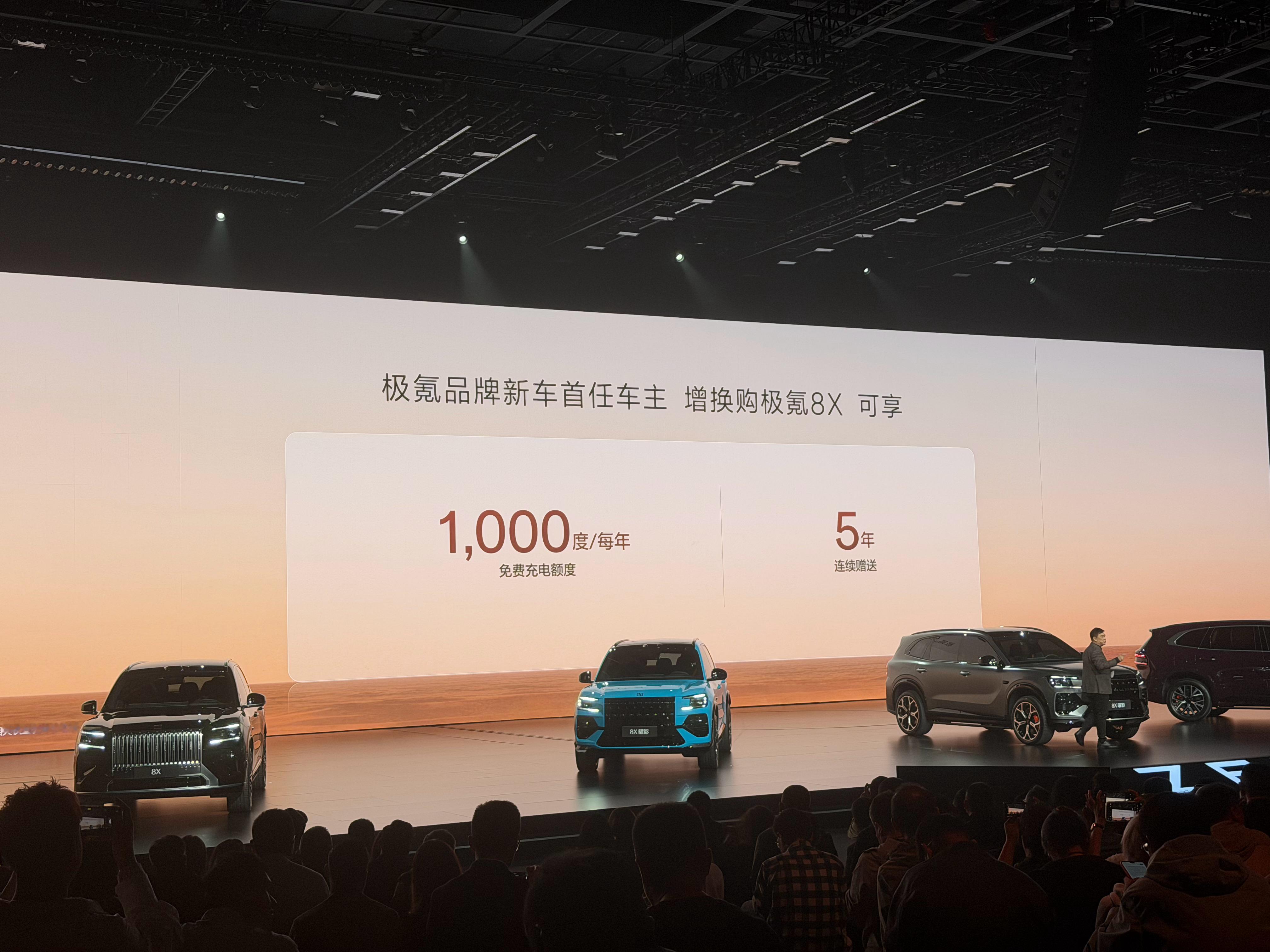 不仅如此,极氪品牌新车首任车主增换购,连续5年每年赠送1,000度免费充电额度,真好啊新公路之王极氪8X正式上市 宁波