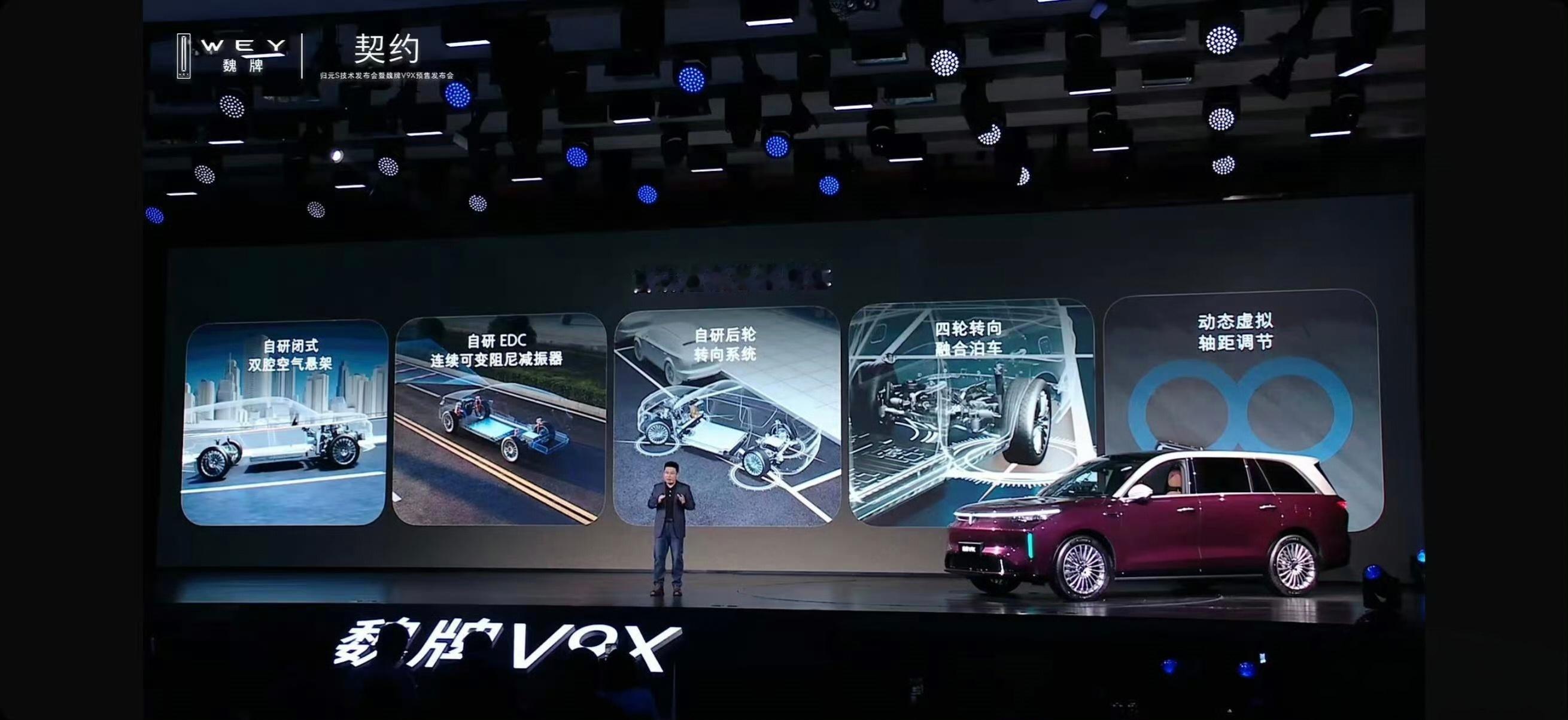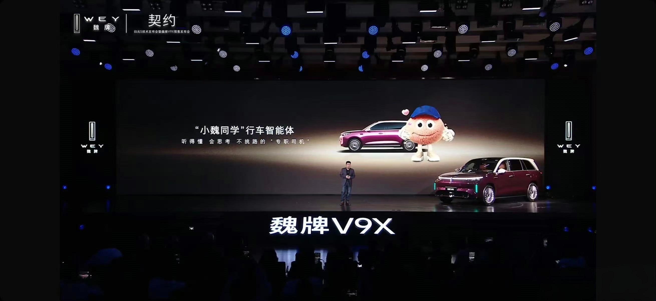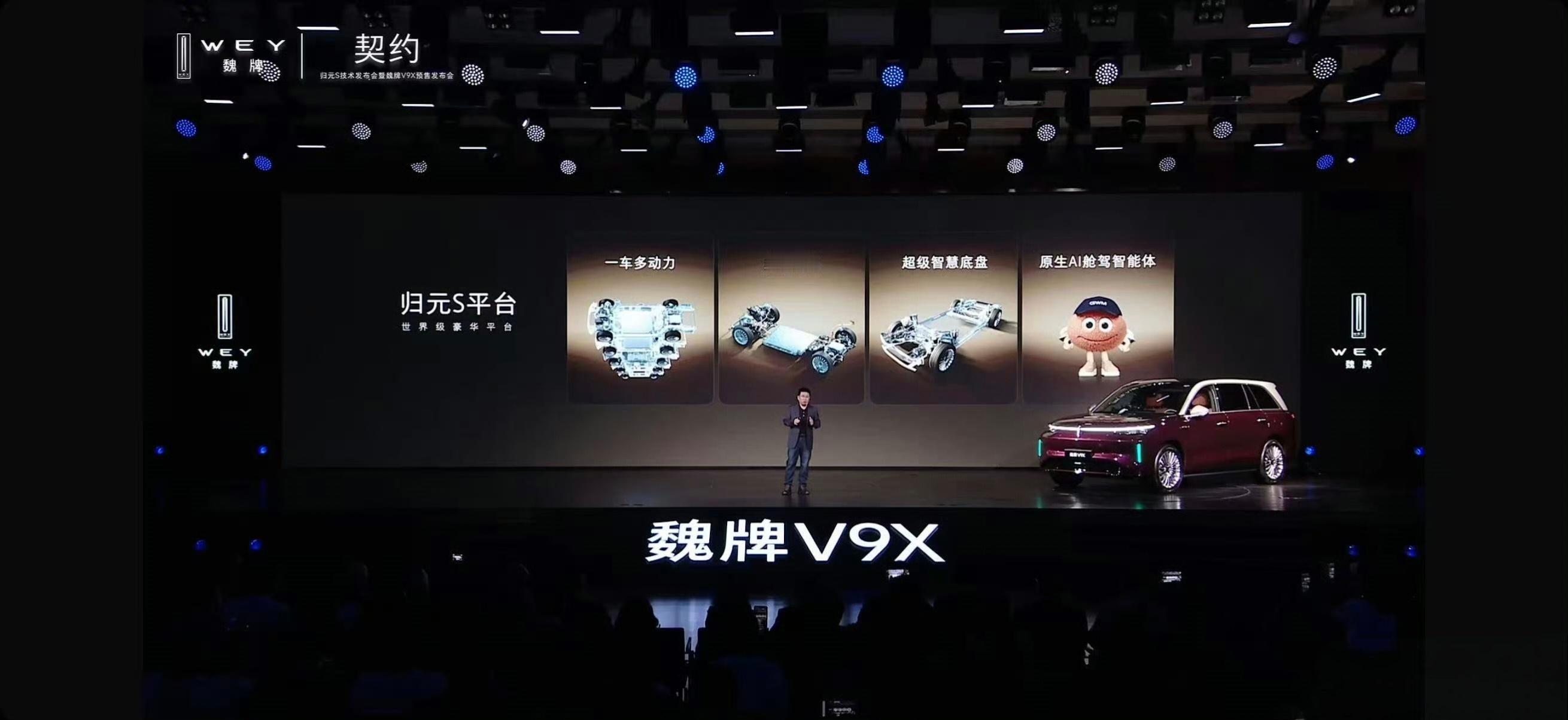 百万级AI汽车平台归元S面世 魏牌V9X来了!AI 豪华六座旗舰”,搭载混动技术架构“超级 Hi4”。