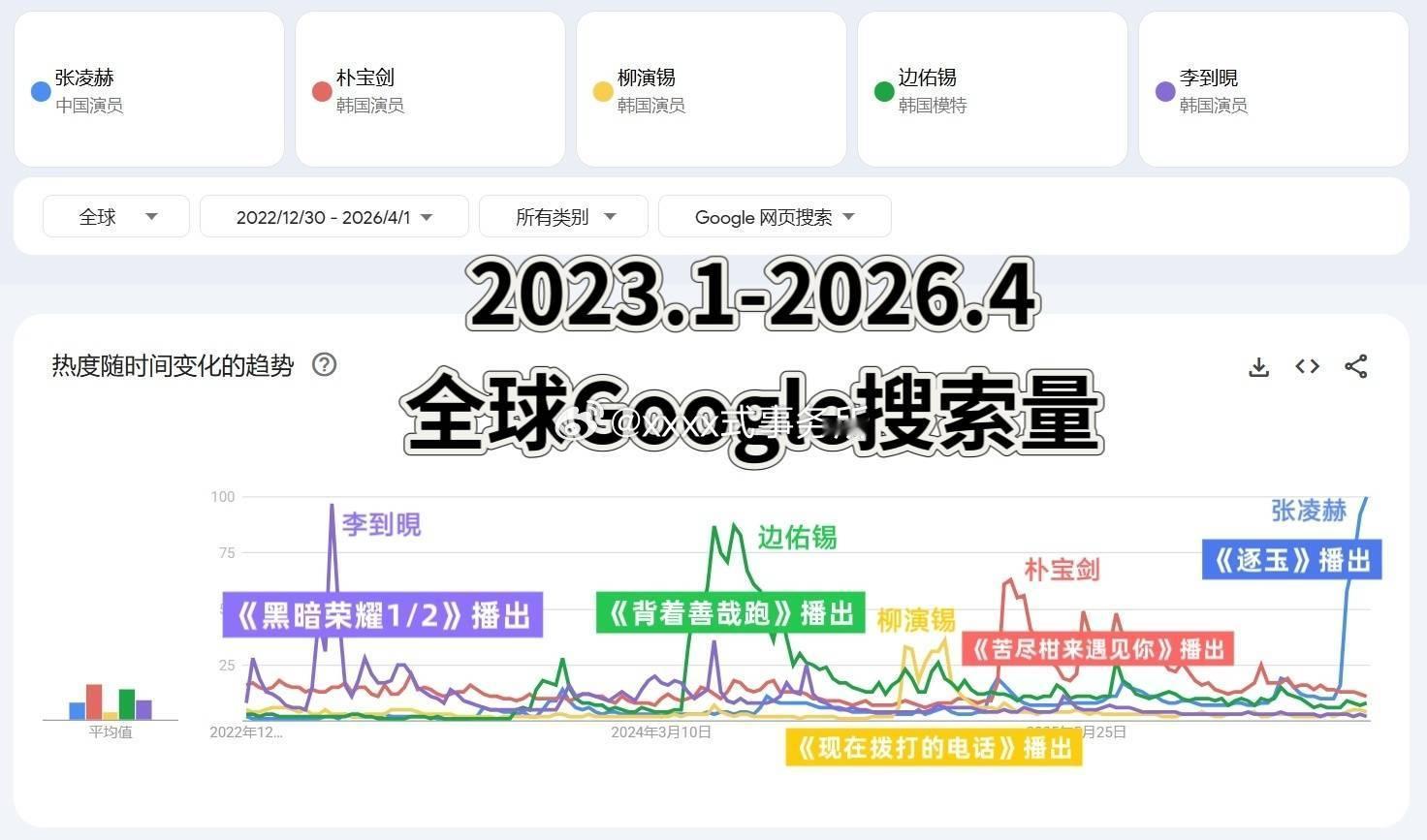 韩国最大搜索网站naver指数显示张凌赫在韩国受欢迎程度是中国男艺人中断层第一,Google搜索也是大爆的程度