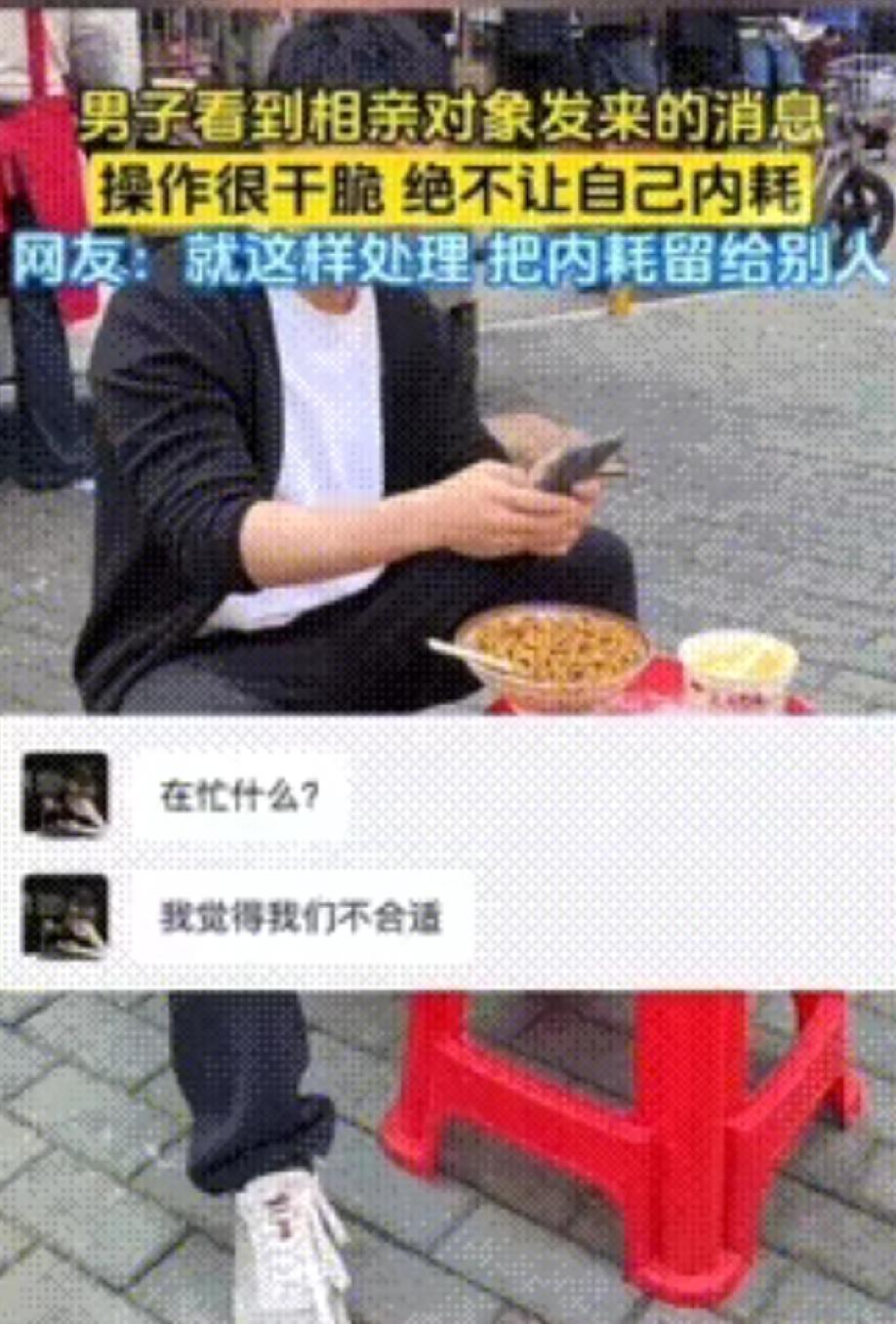 湖北一男子正蹲路边吃早餐,一碗热干面、面窝配蛋酒,吃得正香,相亲对象的消息来的猝不及防,女子一句“我们不合适”,本可直接结束关系,却偏偏追加一句追问,“你知道我们哪里不合适吗”,本质就是想掌控感情节奏,让男子陷入自我怀疑,进而低头挽留、刻意迎合。她笃定男子会放不下,会追问到底,却没料到,对方根本不接招,直接拉黑删除。