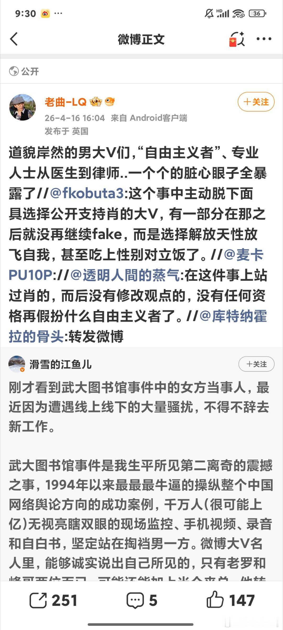 时至今日我们还可以看到有多少人在不遗余力地站队杨某瑗,还是那句话,谁先发起的网暴,谁先制造的舆论,谁先挑起的节奏?受害者肖某被舆论网暴到学业受阻,这些人有站出来么?一个瘙痒的行为,一经女方指控,就扩大到全网声讨的性骚扰,这正当吗?公平吗?我说实话跟这些人没什么可说的。最好是如他们所说,加大力度。他们不是在讲道理,是在把话术重复一万遍以巩固共识。