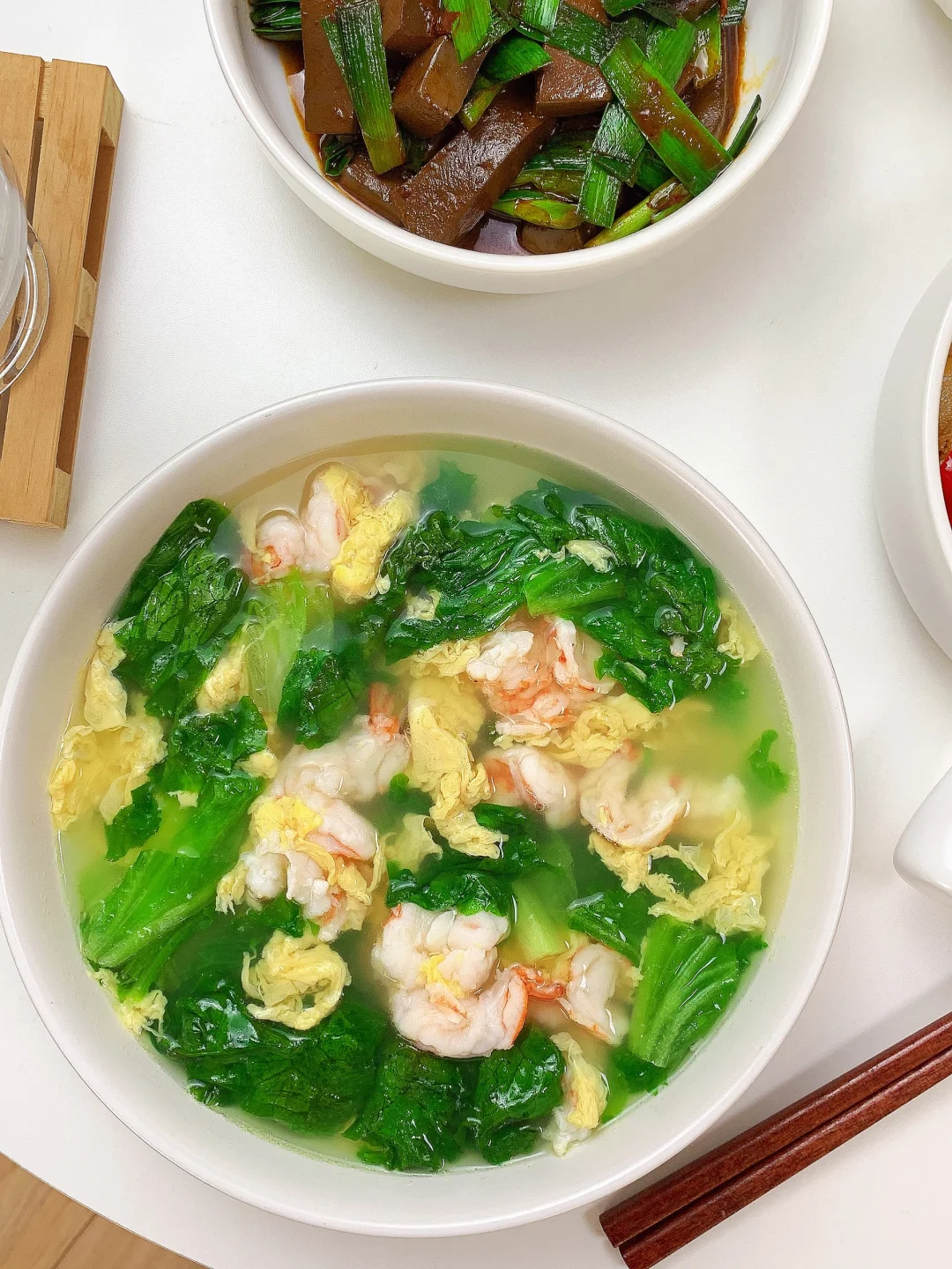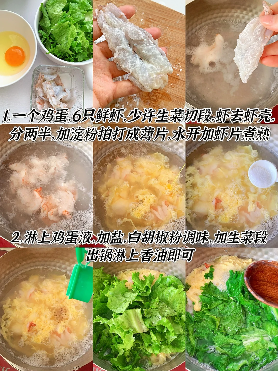 ∙鲜虾🦐鸡蛋生菜汤