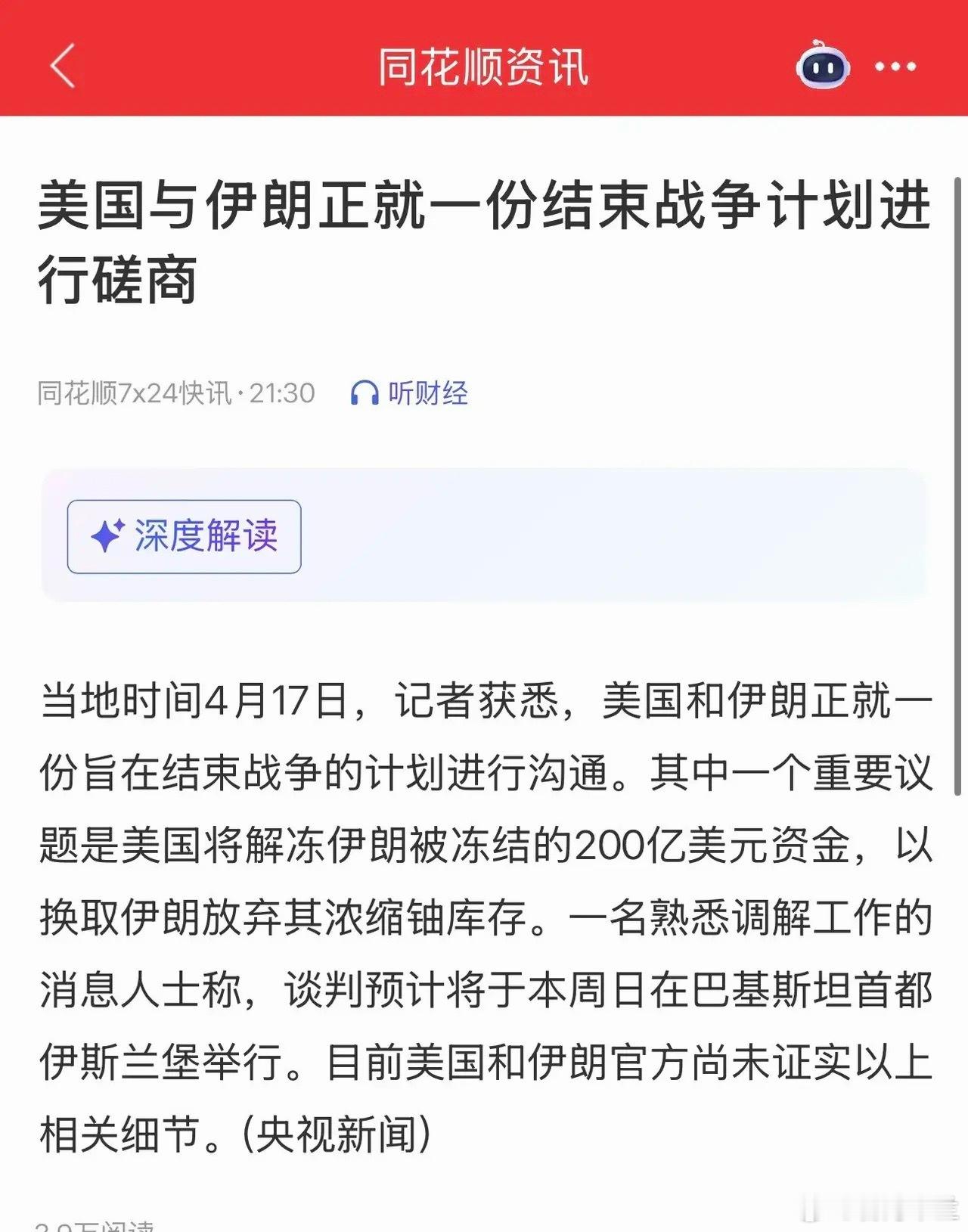 二是据消息称,美伊正磋商结束战争的计划;