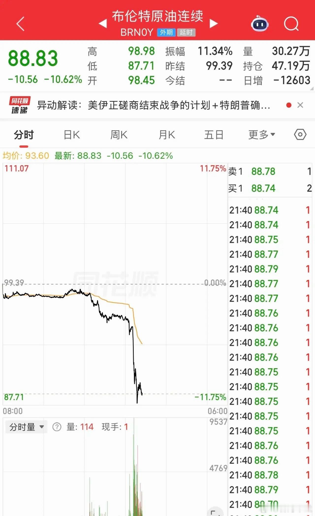 但事实是美伊局势没有进一步升级,霍尔木兹海峡也开放了,原油价格开始暴跌;
