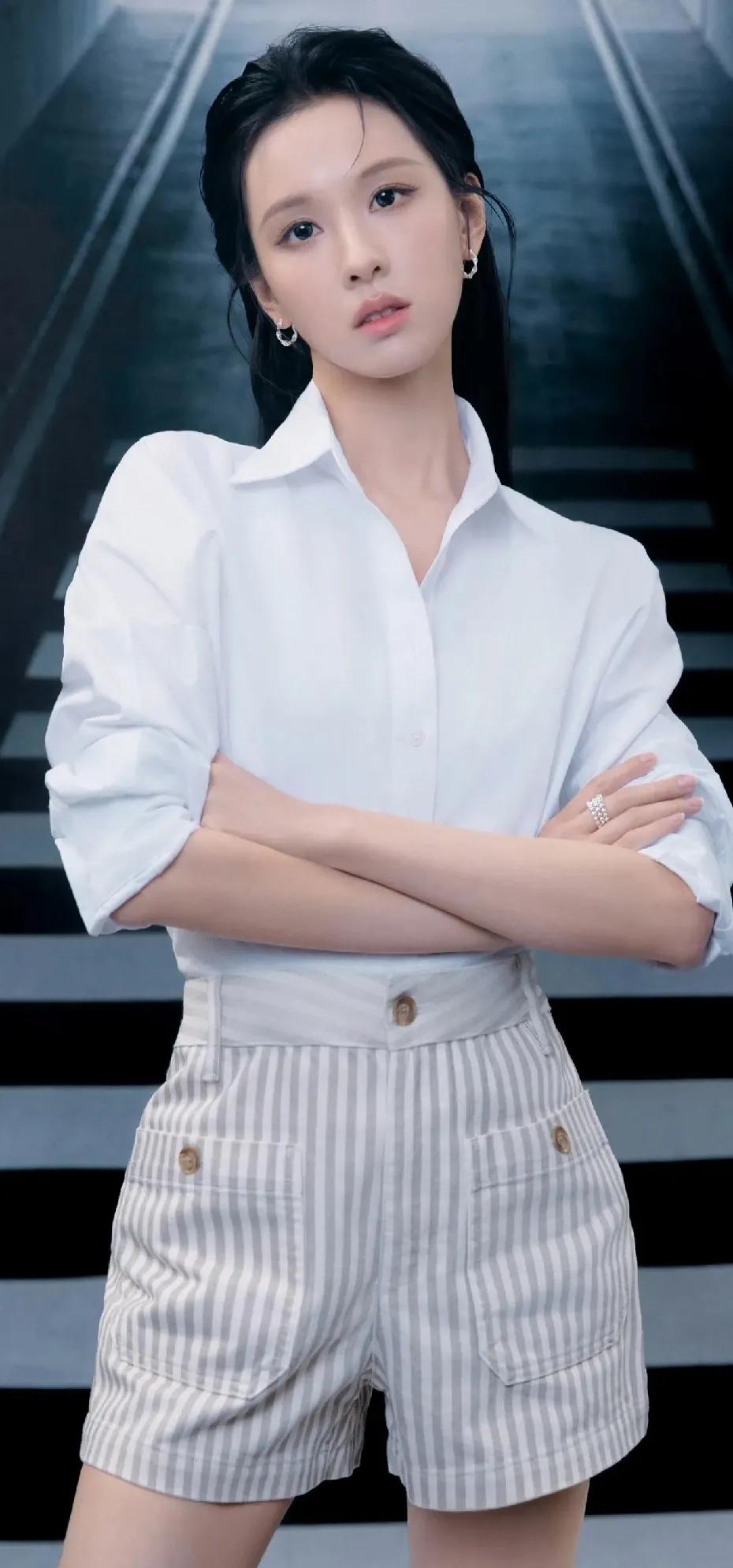 被陈都灵的新造型狠狠惊艳到!🥰 现身零跑发布会,清爽白衬衫搭配条纹热裤,温柔又
