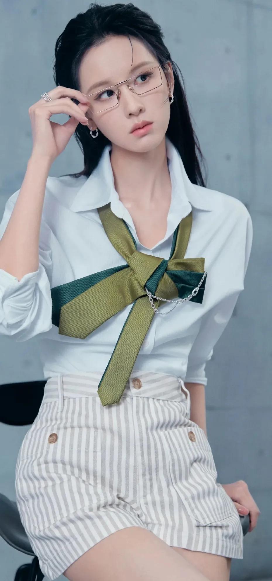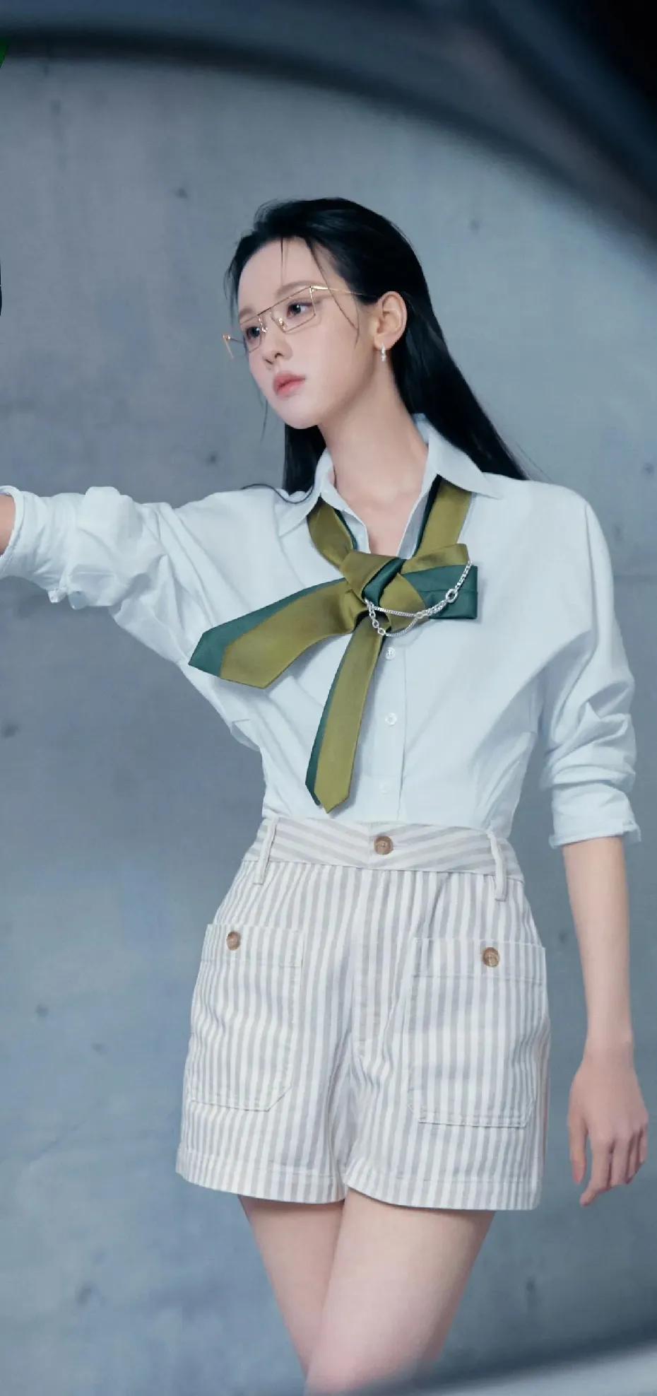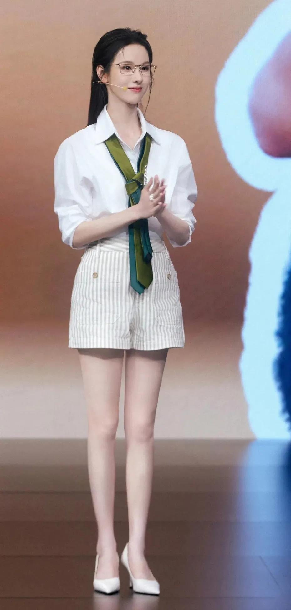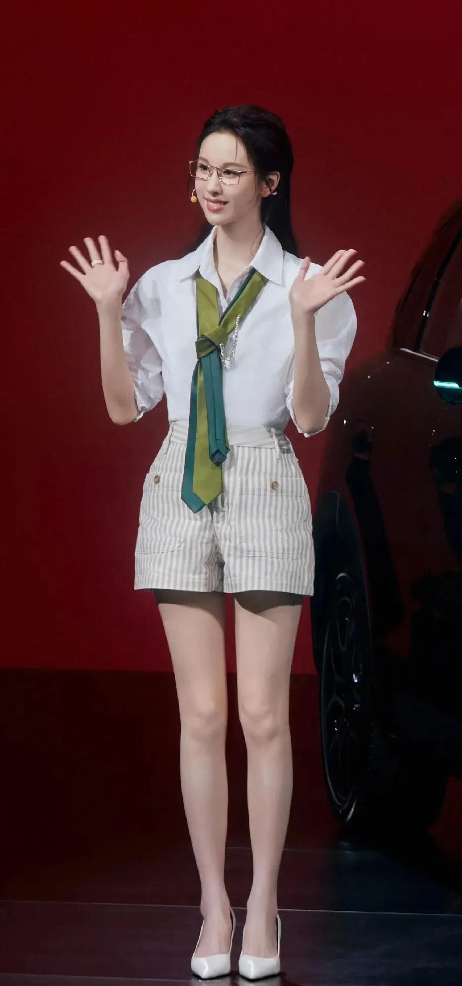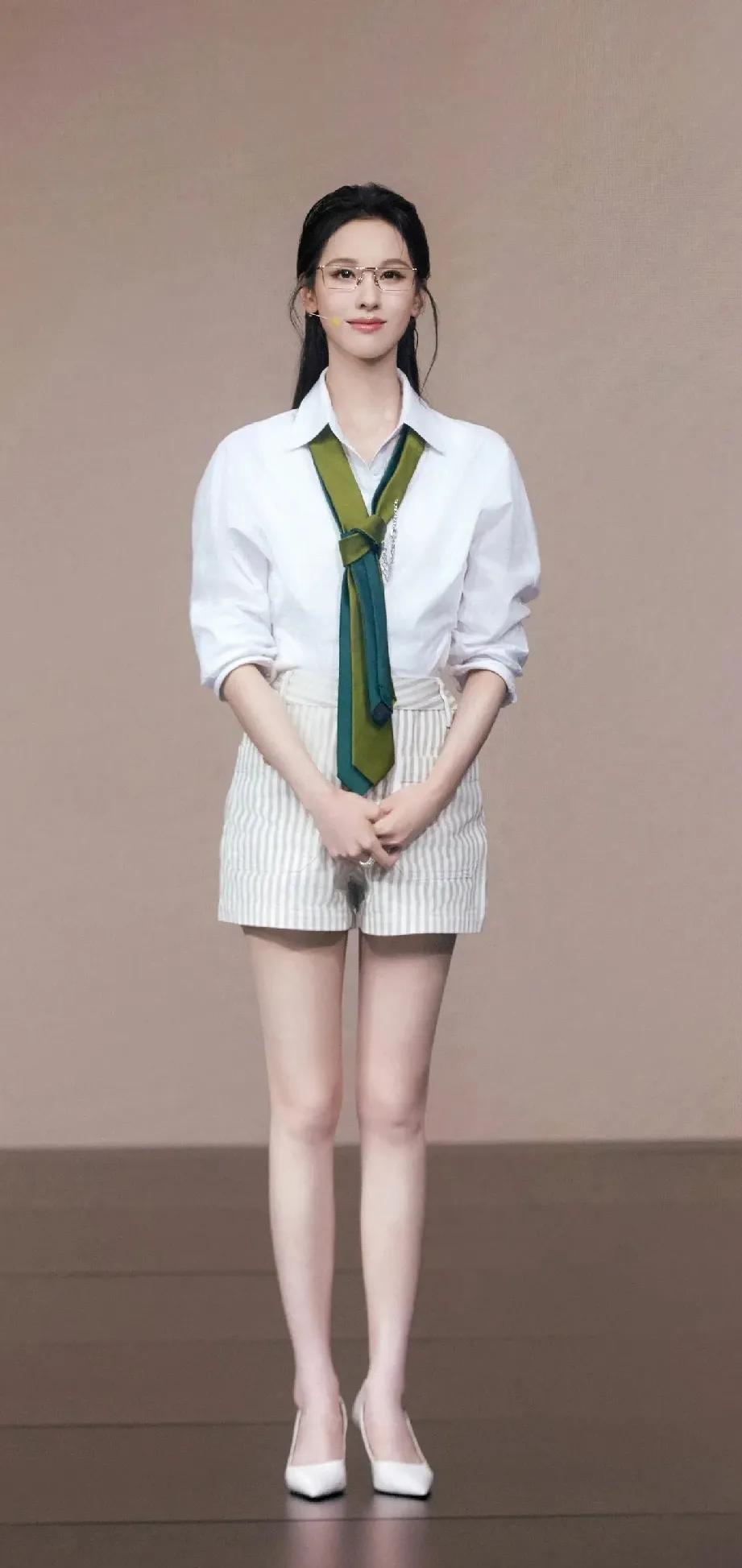 被陈都灵的新造型狠狠惊艳到!🥰 现身零跑发布会,清爽白衬衫搭配条纹热裤,温柔又元气。细框眼镜增添知性气质,墨绿色领带装饰成为点睛之笔。大长腿又白又直,整个人散发着温柔又自信的魅力,真的美到心坎里!陈都灵氛围感