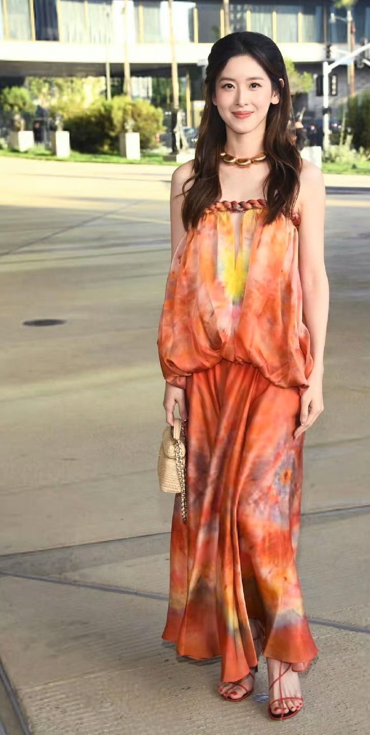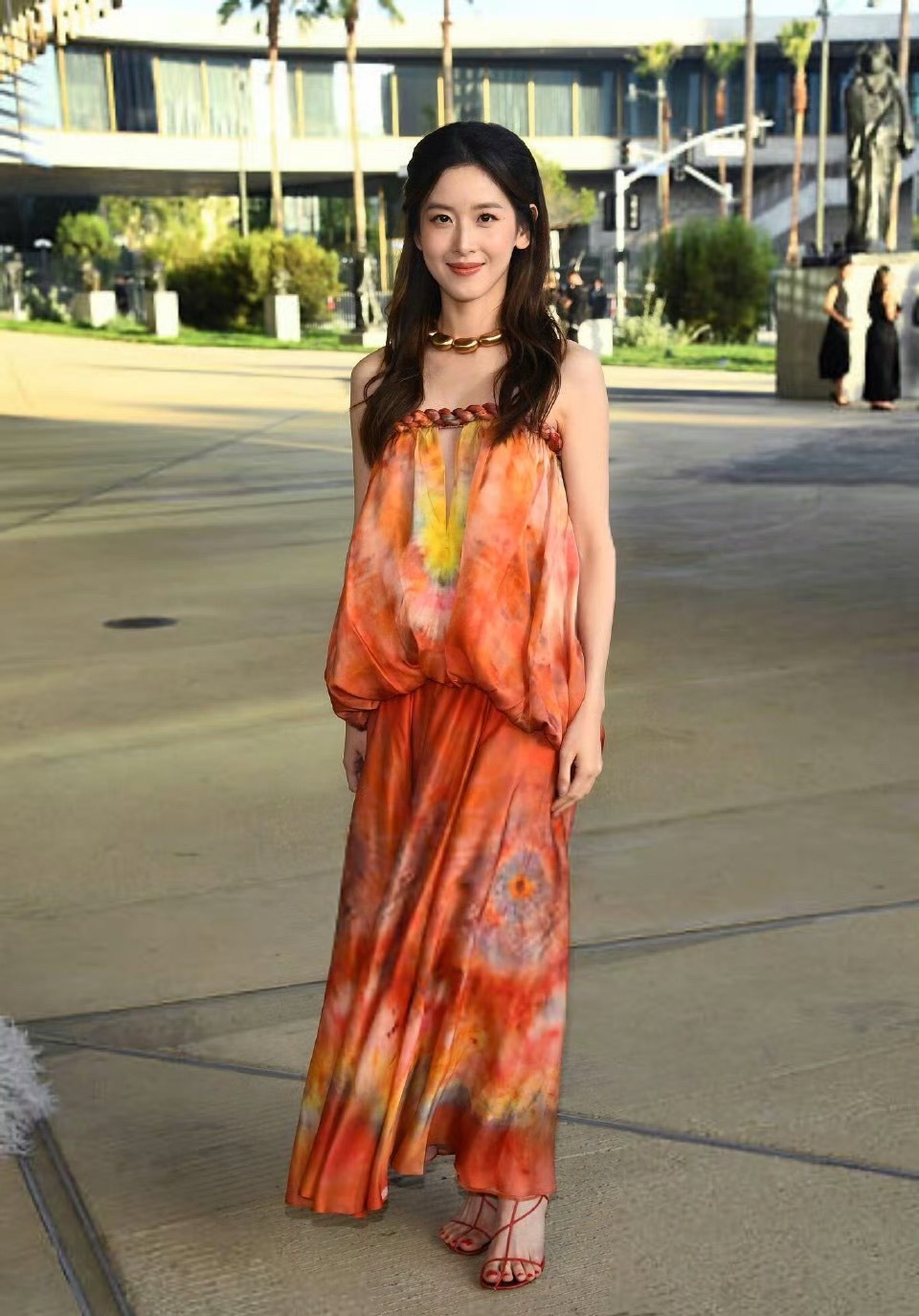 章泽天造型最美的一次!章泽天在美国洛杉矶参加某艺术博物馆举画廊开幕晚宴,身穿Zi