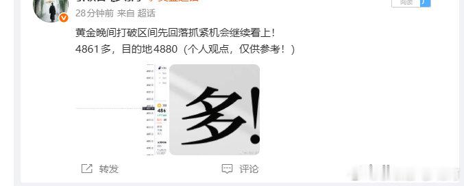 有问题吗?完全没有问题,行情给出明示我们就顺水推舟去做就好,白捡的金子都不要那多多少少有点不知好歹了!给出的4861多,抵达目标位置4880吃下190点完美!