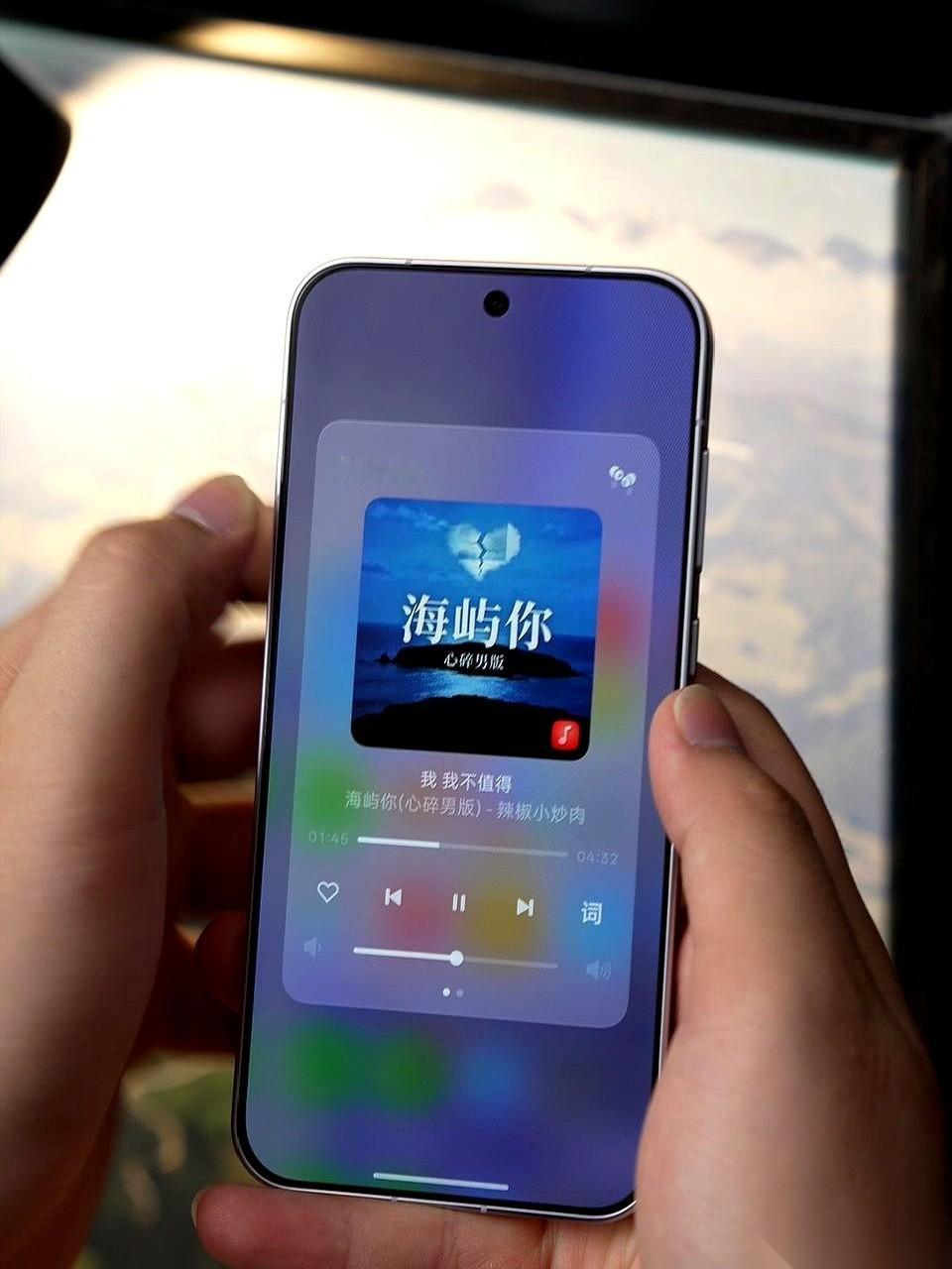 以前出门想跟着手机哼几句,动作多得能让人心烦:得先掏出手机划开锁屏,点进音乐软件,再在一堆按钮里翻找歌词页。现在只要对着锁屏那个“小岛”戳一下,全屏歌词直接蹦出来,盯着屏幕就能跟上调子。