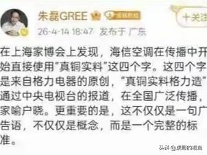 “真铜实料”原本只是一句广告语,说着说着,朱磊自己反倒被忽悠瘸了,以为只有自家空调才是真铜实料。可如今海信宣称自家空调也是真铜实料,还提及美的、海尔等主流品牌的空调同样如此,这让格力CMO朱磊有些恼羞成怒了。大家怎么看?空调铝代铜 格力搞笑