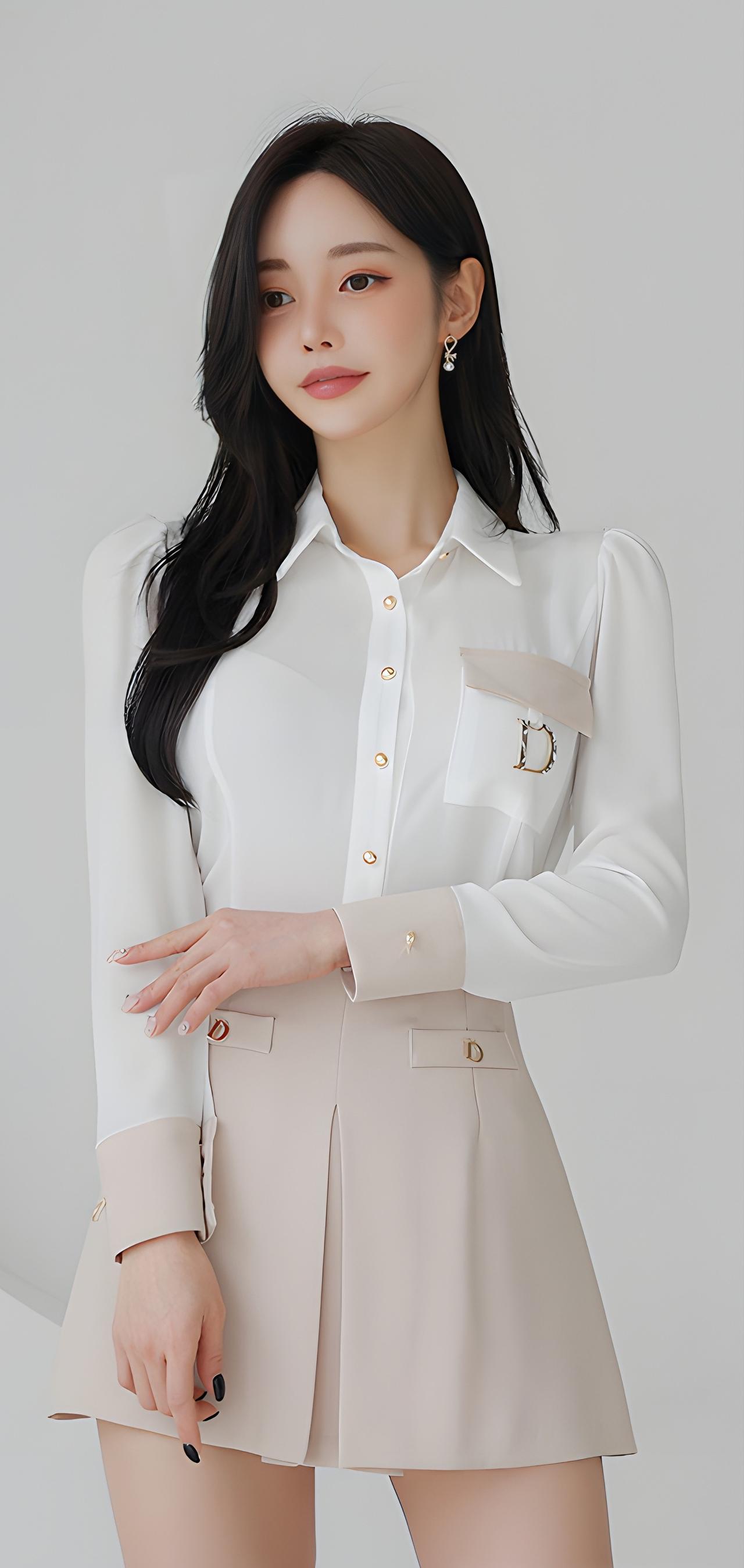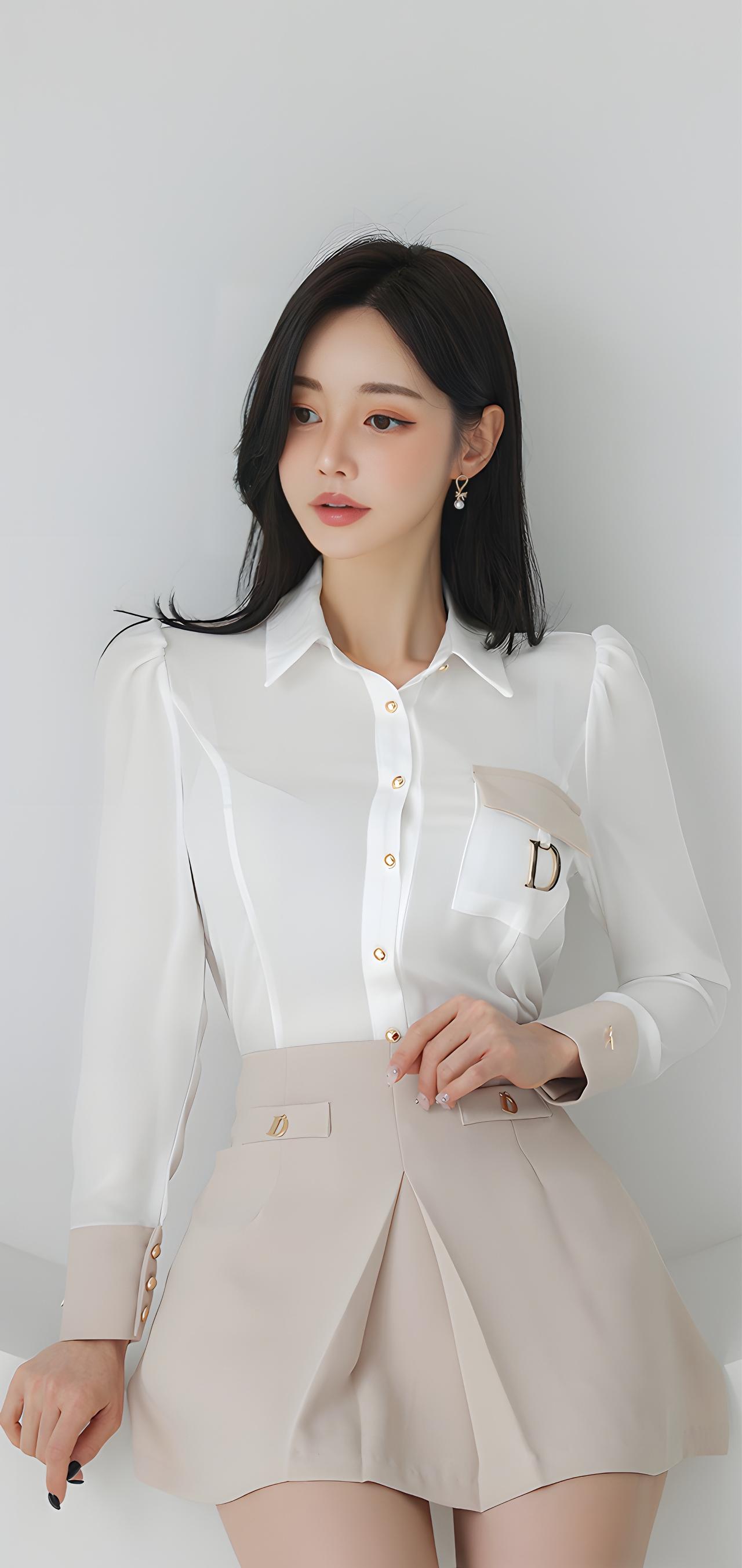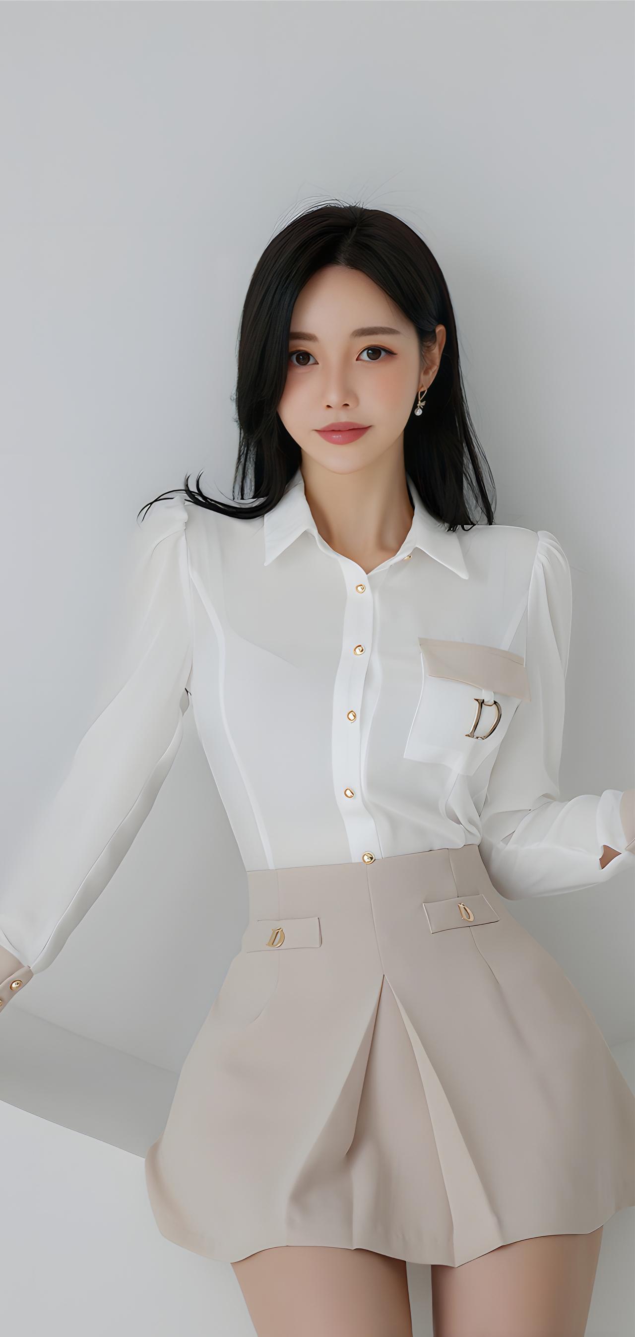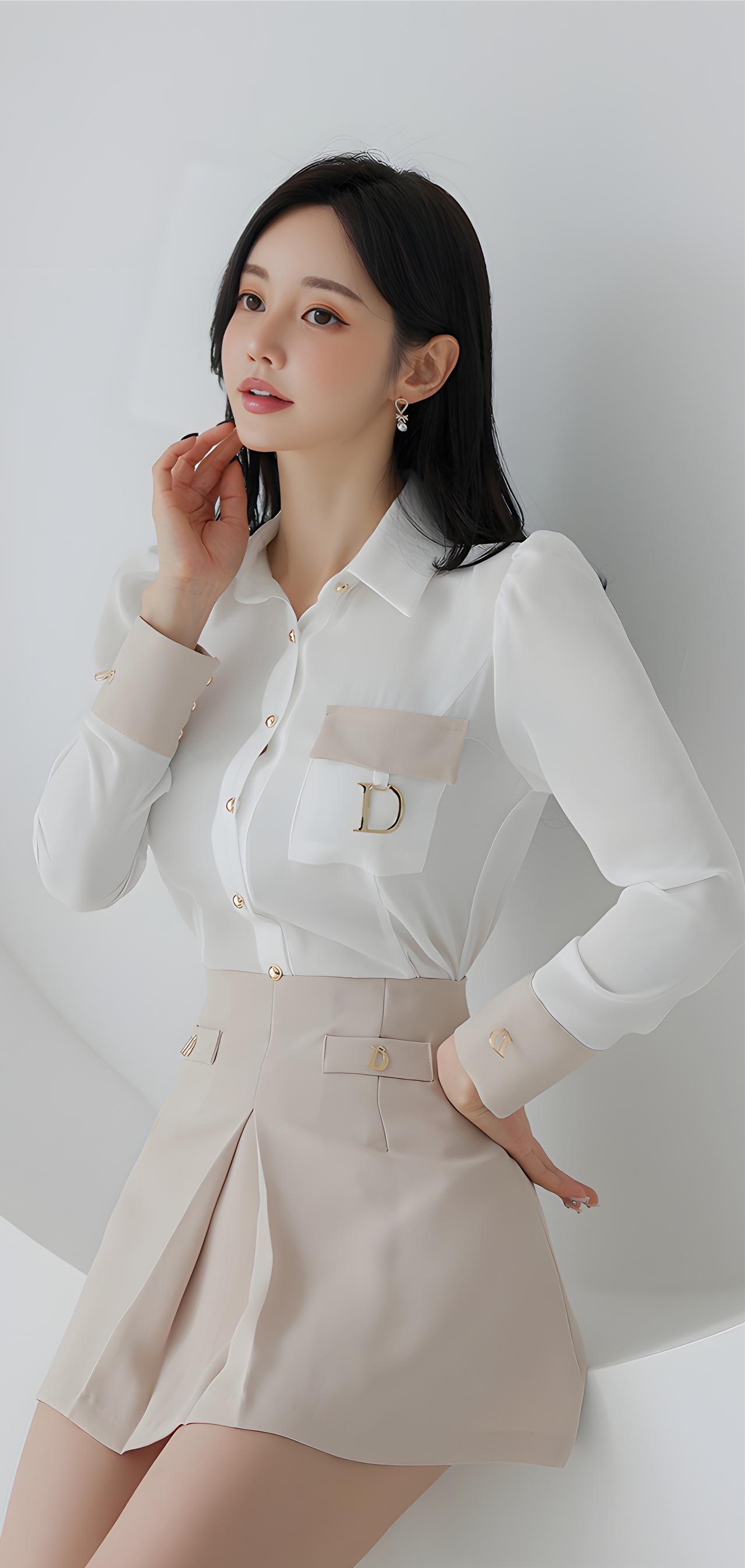 优雅白衬衫搭配米色短裙,简约时尚,气质满分!👗👠