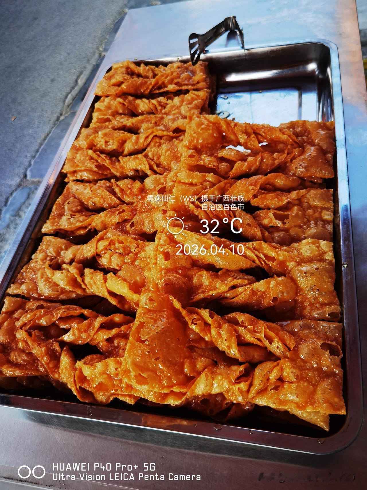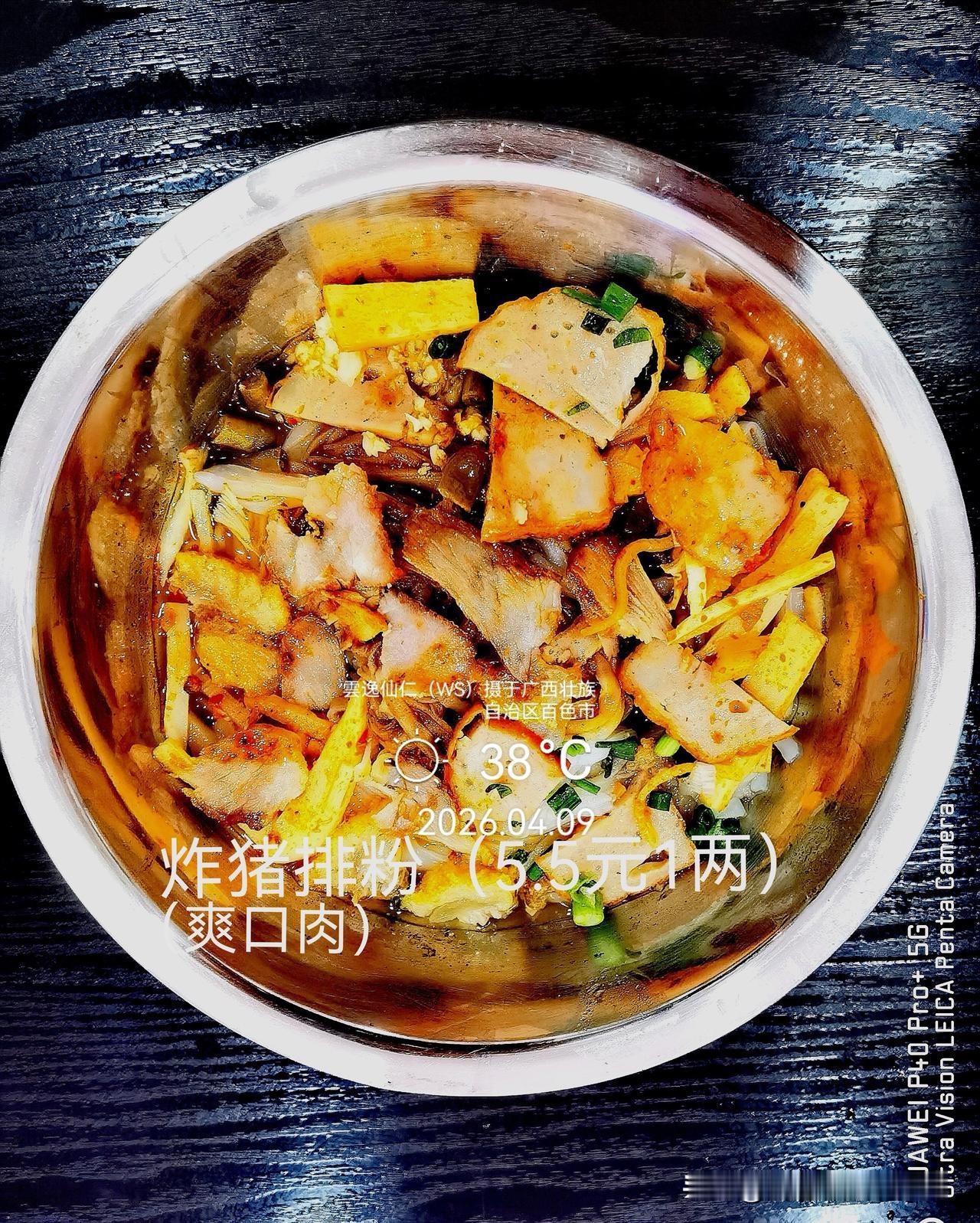 旅居生活记录(9453)广西壮族自治区百色市(138)品尝小吃40:炸猪排(爽口肉)粉(5.5元1两)、蛋散(3元1个)。