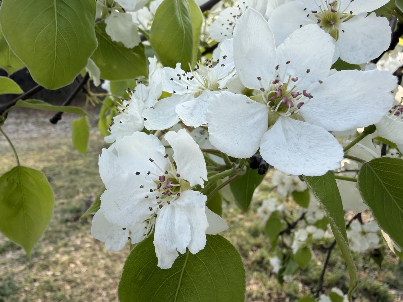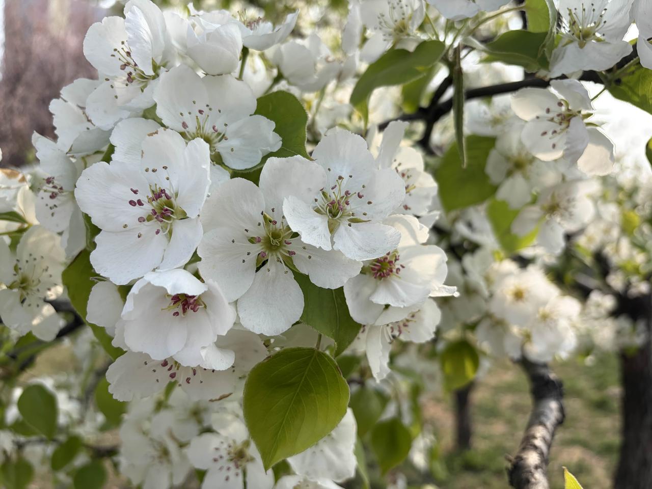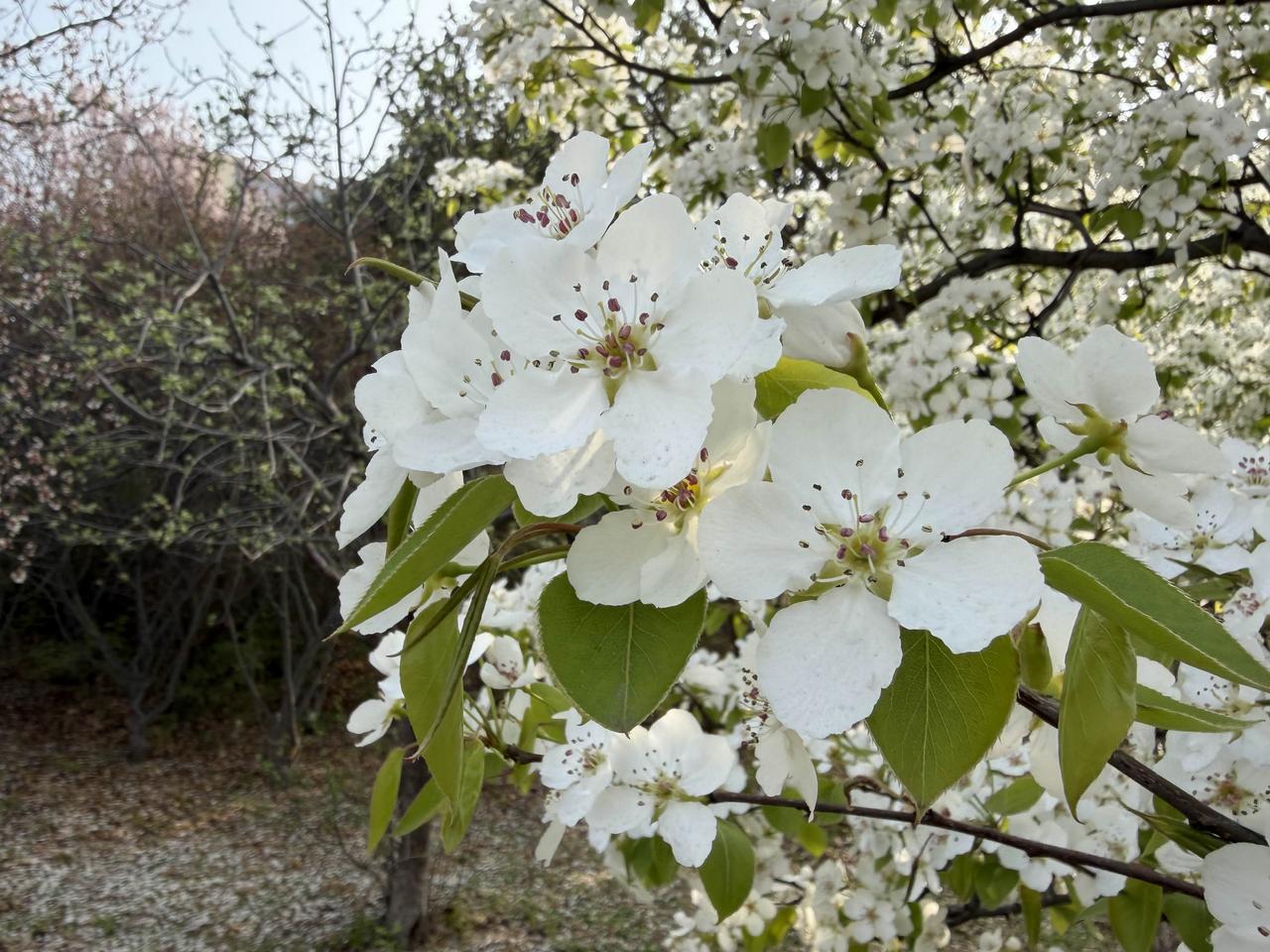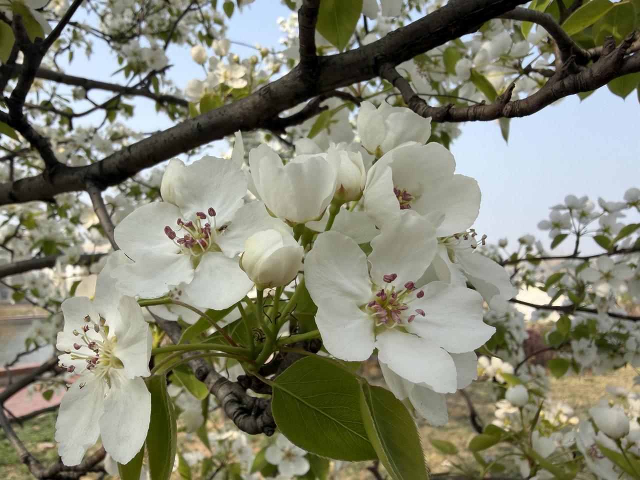 梨花似雪满枝头, 多为开心找理由。 春暖花开多幸福, 只生快乐不生愁。