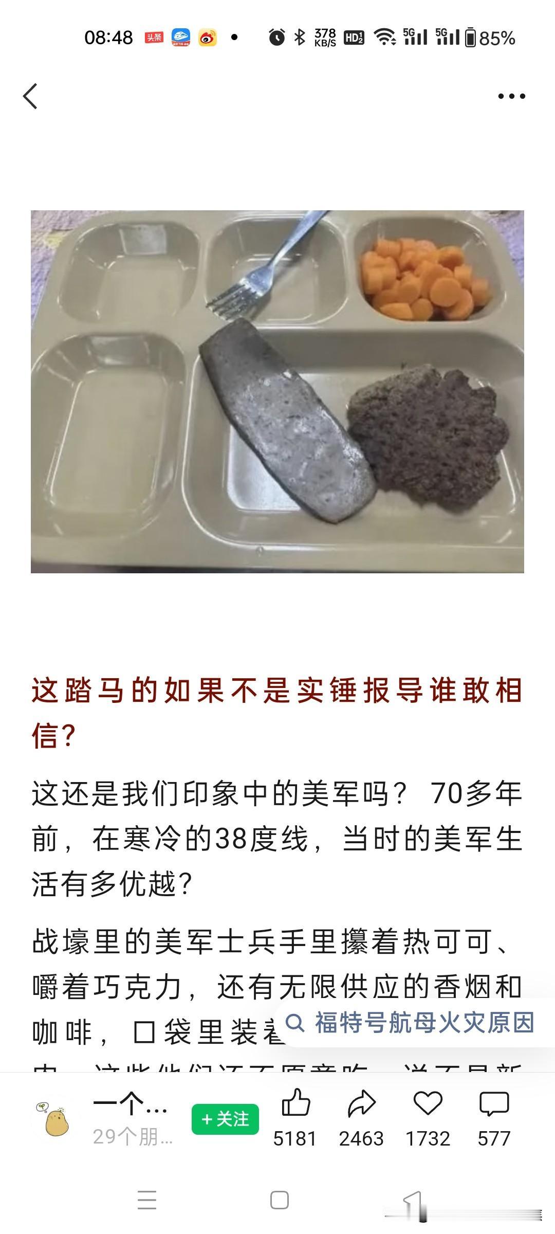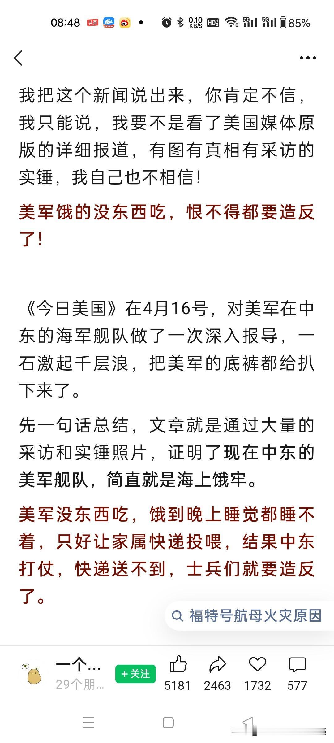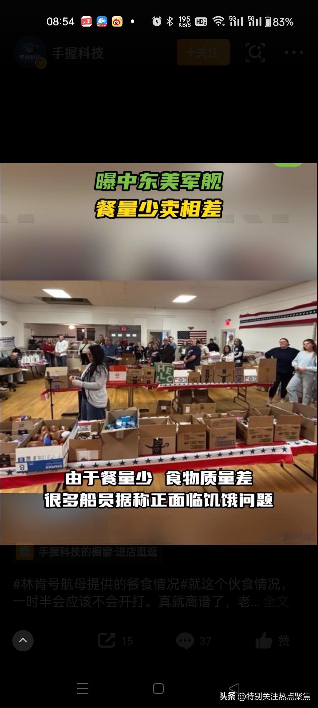 中东的美国航母上大兵天天饿肚子,网络大V毫无底线地造谣 这仗根本打不下去了,还说
