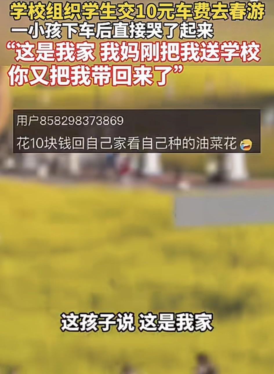 不得不说,真是太巧了!看的油菜花是孩子家的地,还是孩子跟他爷爷种的,关键是看孩子家油菜花,孩子不收钱就算了,你还收孩子十块钱车费!这要是老师再要求孩子们必须坐大巴返校后再回家,天理何在啊!
