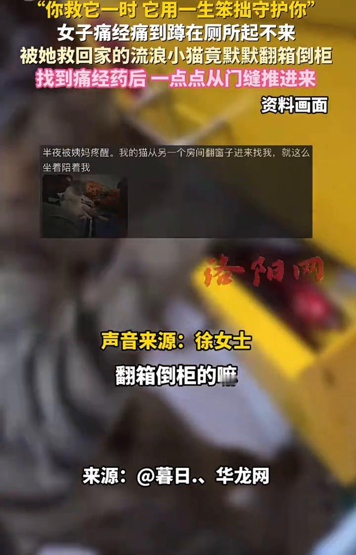 女子痛经痛到蹲在厕所起不来,被她救回家的流浪小猫竟默默翻箱倒柜,找到痛经药后一点点从门缝推进来,其实它们什么都懂。