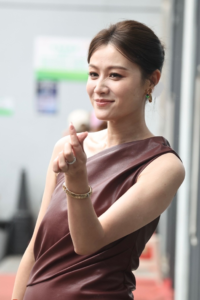 叶一茜这回穿了一件咖啡色的斜肩裙,让她秀出了迷人的香肩,还秀出了完美的身材曲线。