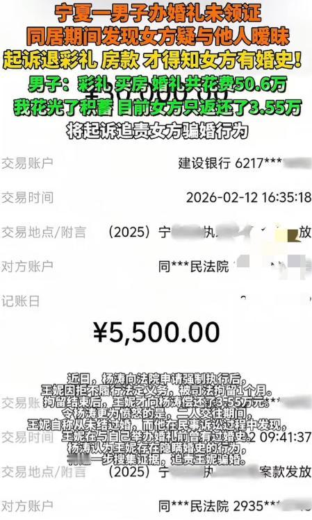 宁夏,一37岁男子花彩礼50万,与相亲女子订婚,岂料同居期间,男子发现未婚妻与他