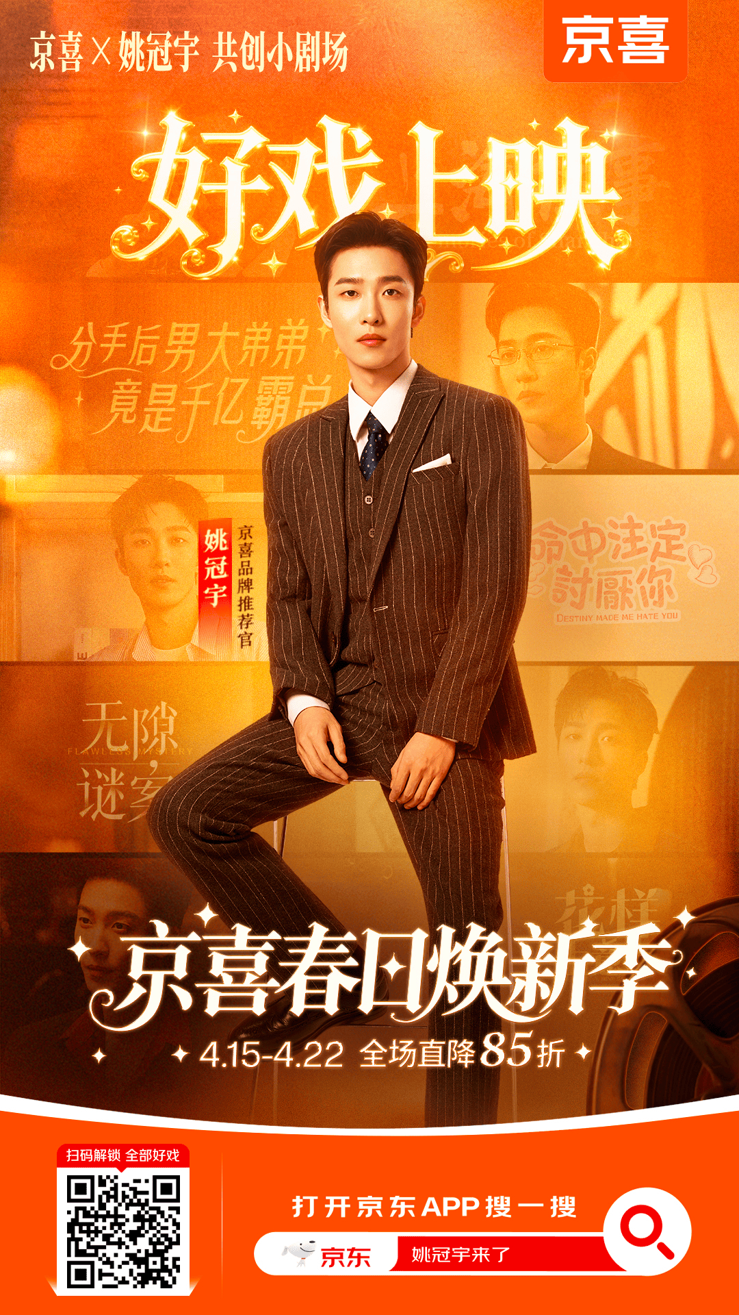 谁懂啊,老姚这次在京喜小剧场里真的帅飞了!从台式偶像剧深情男主到刑侦剧冷酷脸,一人分饰多角完全没压力,松弛感和高级感直接焊死。正好赶上京喜春日焕新季,全场直降85折!我已经打算去「京喜」get姚总官方同款散会白T了,还有老树妃子笑荔枝全网低价、京喜水晶手串8折、纯钛保温杯限时秒杀。上京东搜「姚冠宇来了」或戳【网页链接】跟着姚总选,省心又省钱。互联网首部万人共创短剧长这样无限艺员姚冠宇拿捏我的泪腺笑肌姚冠宇京喜品牌推荐官70岁追星奶奶勇闯短剧圈