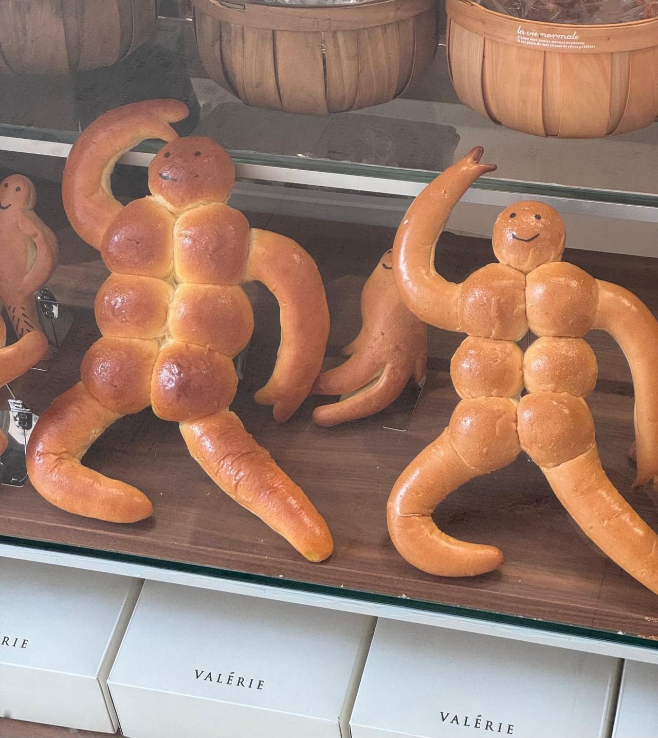 最近网上很火的肌肉人面包, 终于还是让我找到了。 其实有点像用面团捏成的肌肉小人