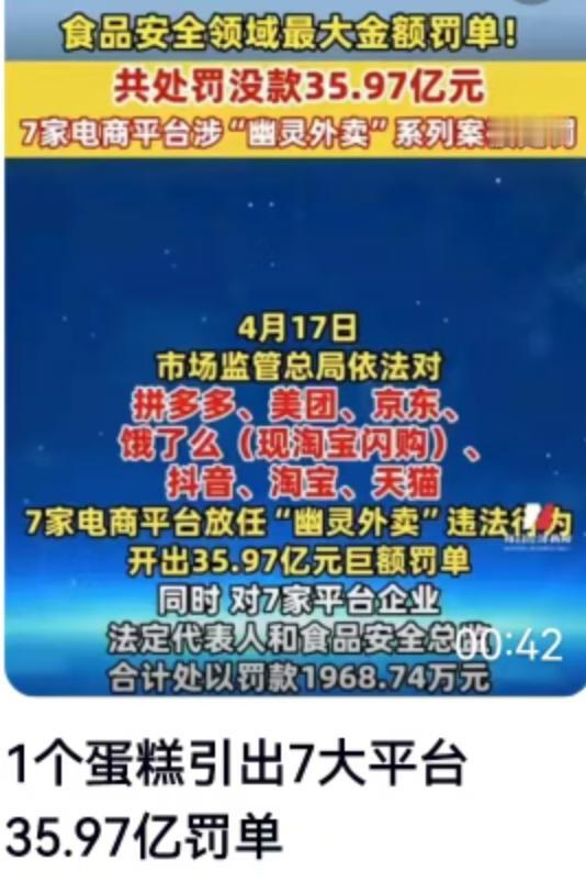 4月17日监管部门扔出的一份通报,直接把互联网电商的遮羞布扯下了一角。起因极其平常,不过是一单问题蛋糕的投诉。顺藤摸瓜查下去,拔出萝卜带出泥,牵出了一条令人后背发凉的隐蔽产业链。大量连个实体店面都没有的虚假商家,躲在暗处通过转单平台疯狂接单牟利。罚单最终落在了拼多多、美团、京东等7家头上,监管给出的尺度非常明确:“一店一处罚”,累计罚没金额高达35.97亿元。