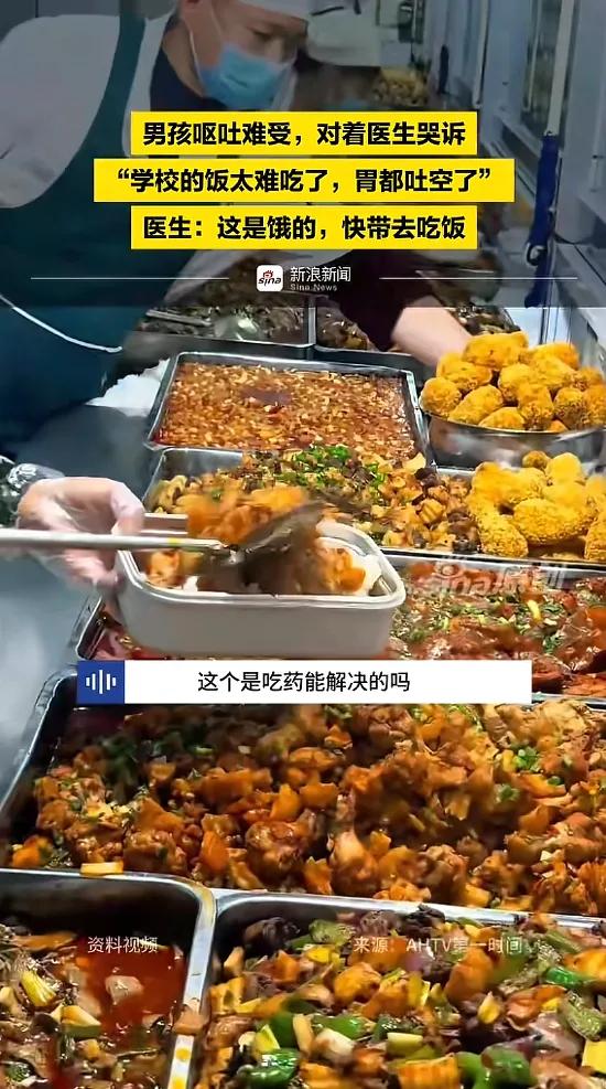 “笑不活了!”4月14日,广东江门,一男孩突然肚子痛呕吐,爸爸赶紧送他去医院,没想到见到医生,男孩就哭诉:“学校的饭不是人吃的,太难吃了,吃不下去!”医生哭笑不得,让男孩赶紧去吃东西,说这吃药解决不了!网友:到底有多难吃?