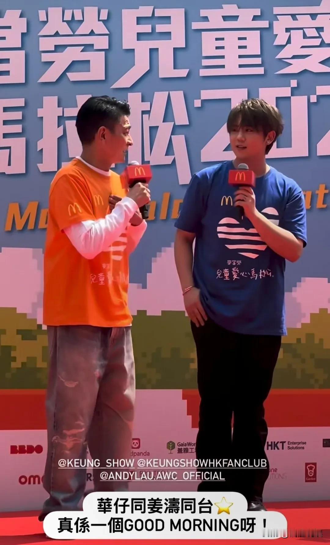 天王刘德华和香港顶流姜涛,同场现身“麦当劳爱心儿童马拉松”活动,刘德华保养得太好了,风采依旧!
