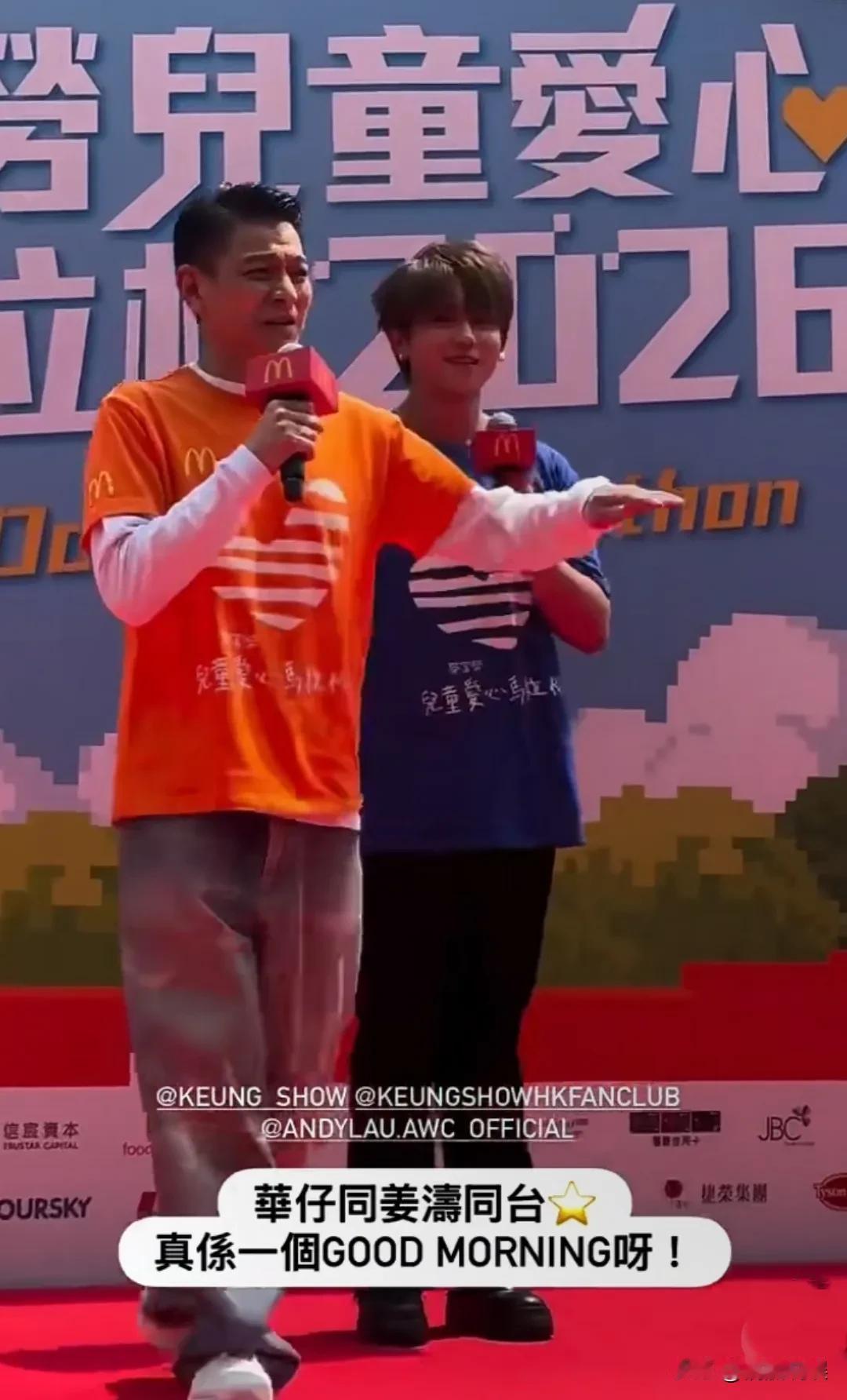 天王刘德华和香港顶流姜涛,同场现身“麦当劳爱心儿童马拉松”活动,刘德华保养得太好