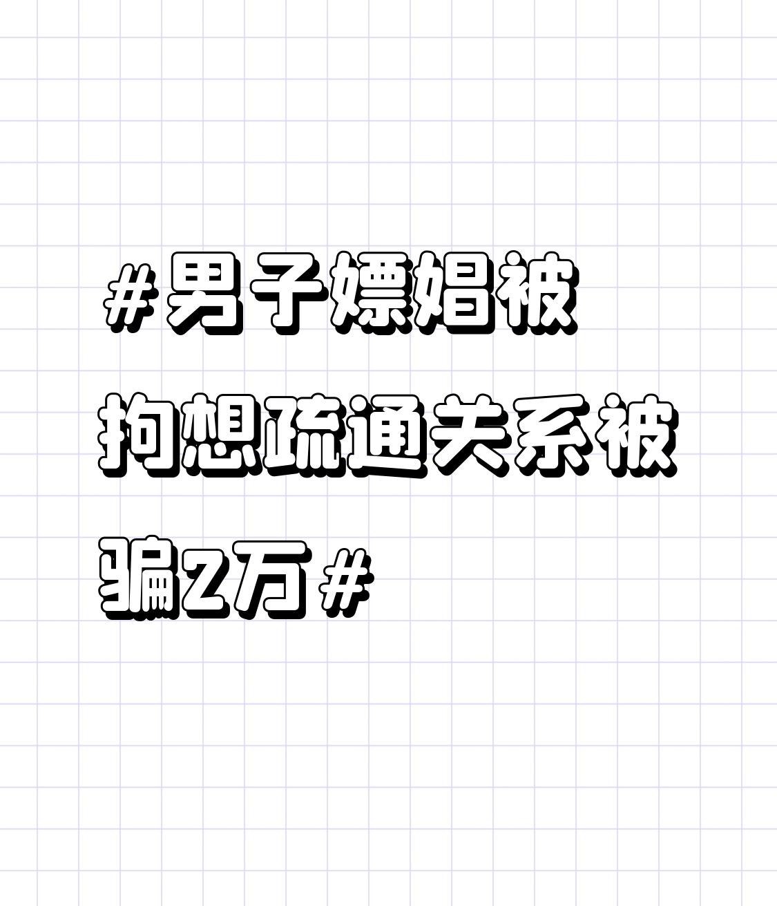 男子嫖娼被拘想疏通关系被骗2万 这男子可真是“赔了夫人又折兵”啊!嫖娼本就是违法