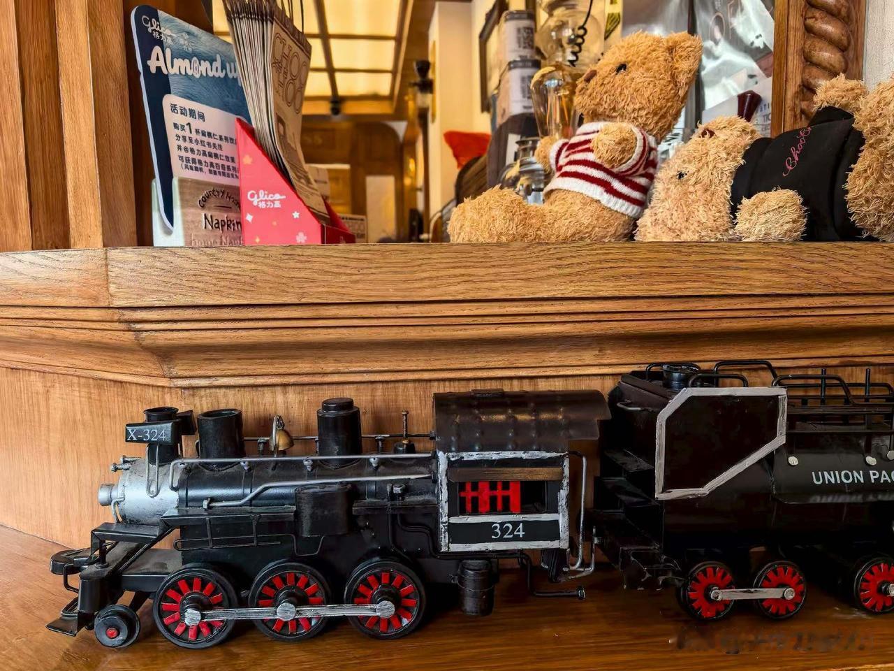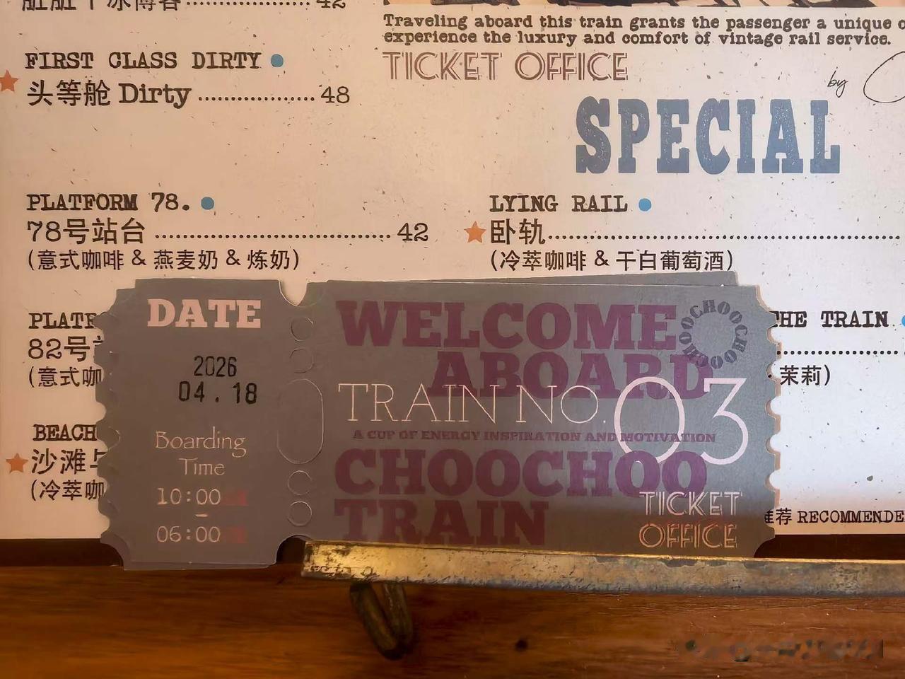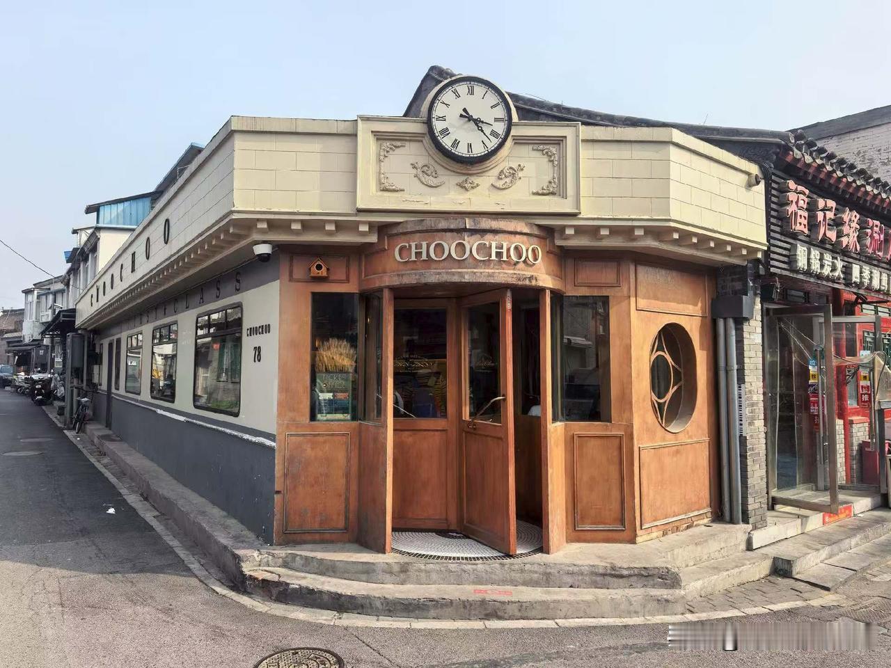 胡同里的CHOOCHOO咖啡馆摇身一变,化作一节复古车厢,镶嵌于青砖灰瓦之间。门头的时钟悠悠前行,金属铆钉搭配巴黎车站风格的钟面,将旧时光牢牢铆在韩家胡同78号。推开门,皮质座椅与铜质行李架,让人不禁忆起《东方快车谋杀案》里的某个午后。点单时,咖啡师递来一张印着当日日期的车票——你虽无既定目的地,却已然检票登车。
