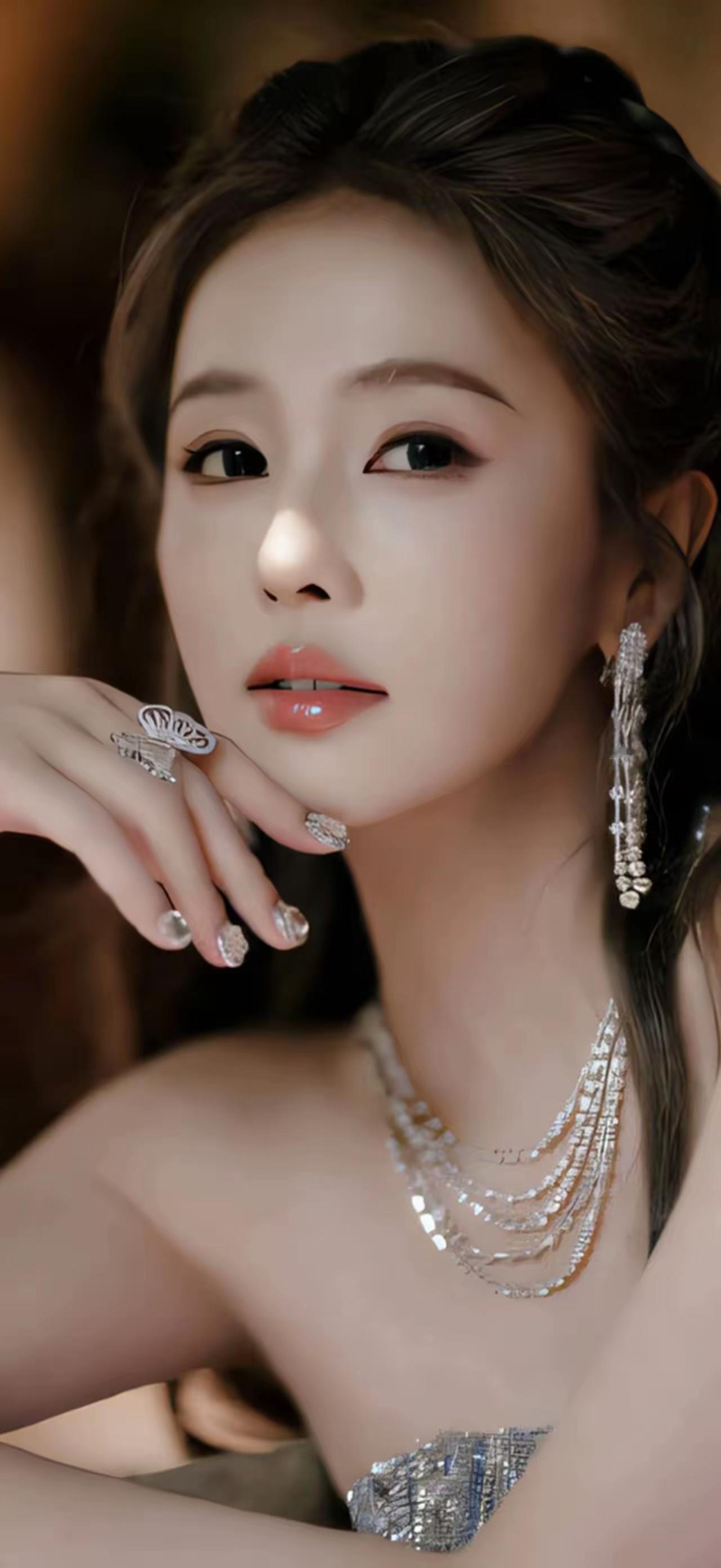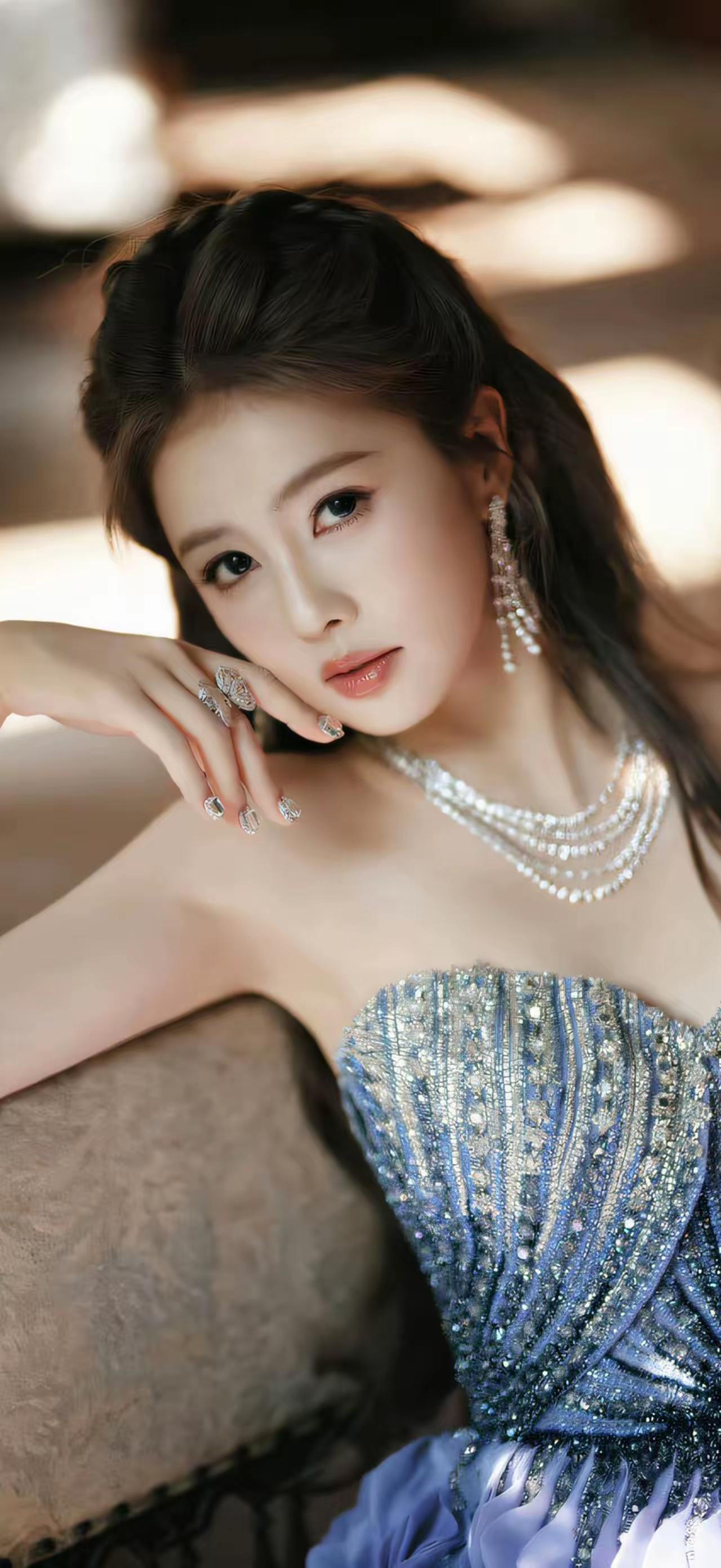 美女壁纸~白鹿,她在不同风格里解锁多样魅力:蓝调闪片礼服缀满星光,颈间珍珠衬出温
