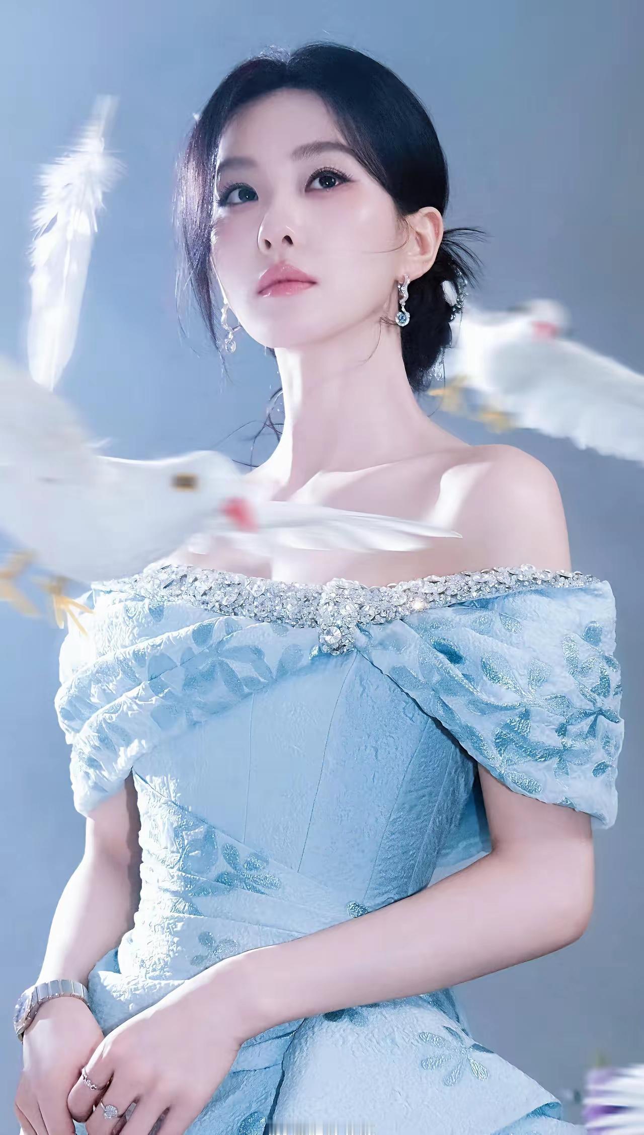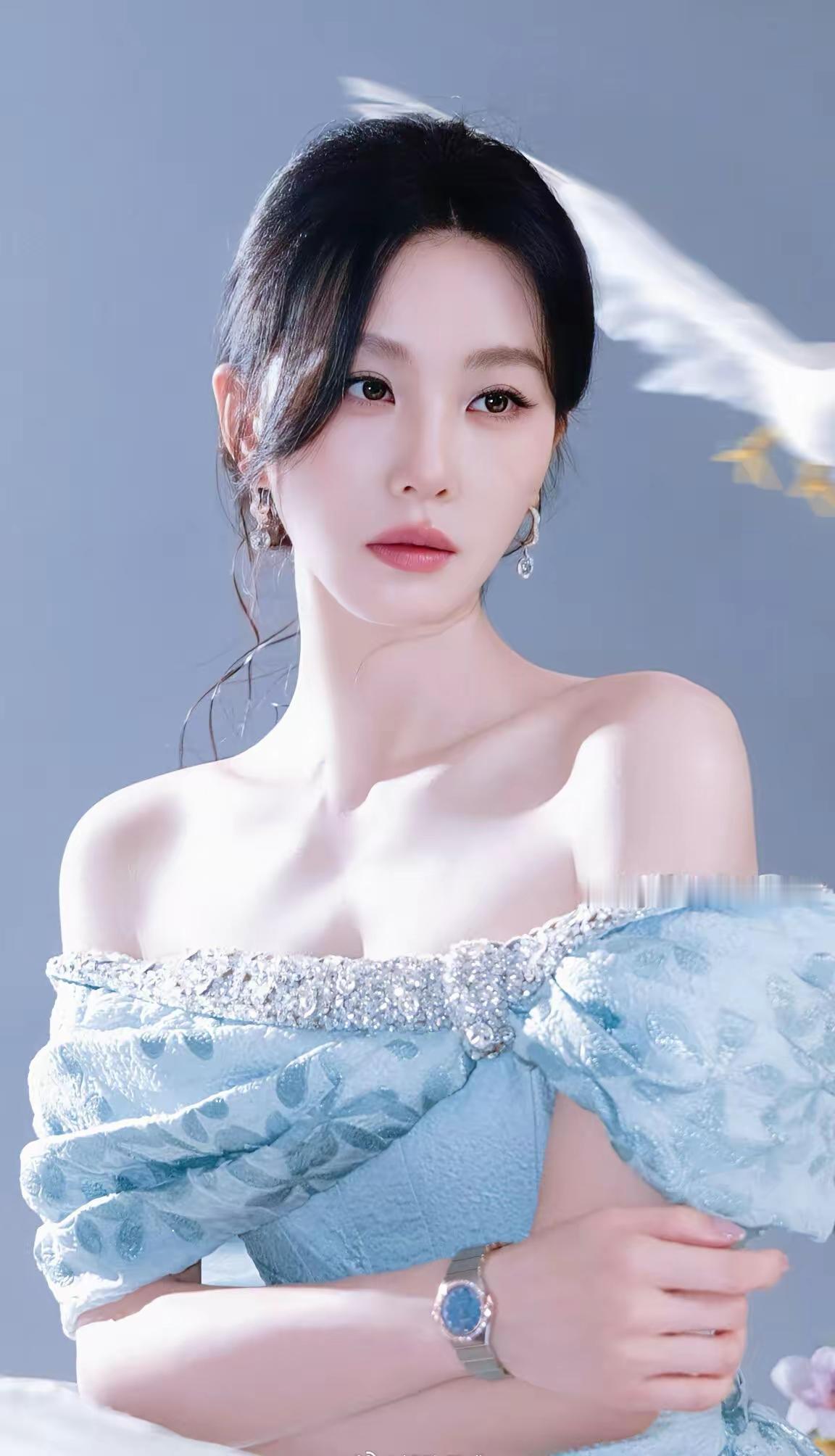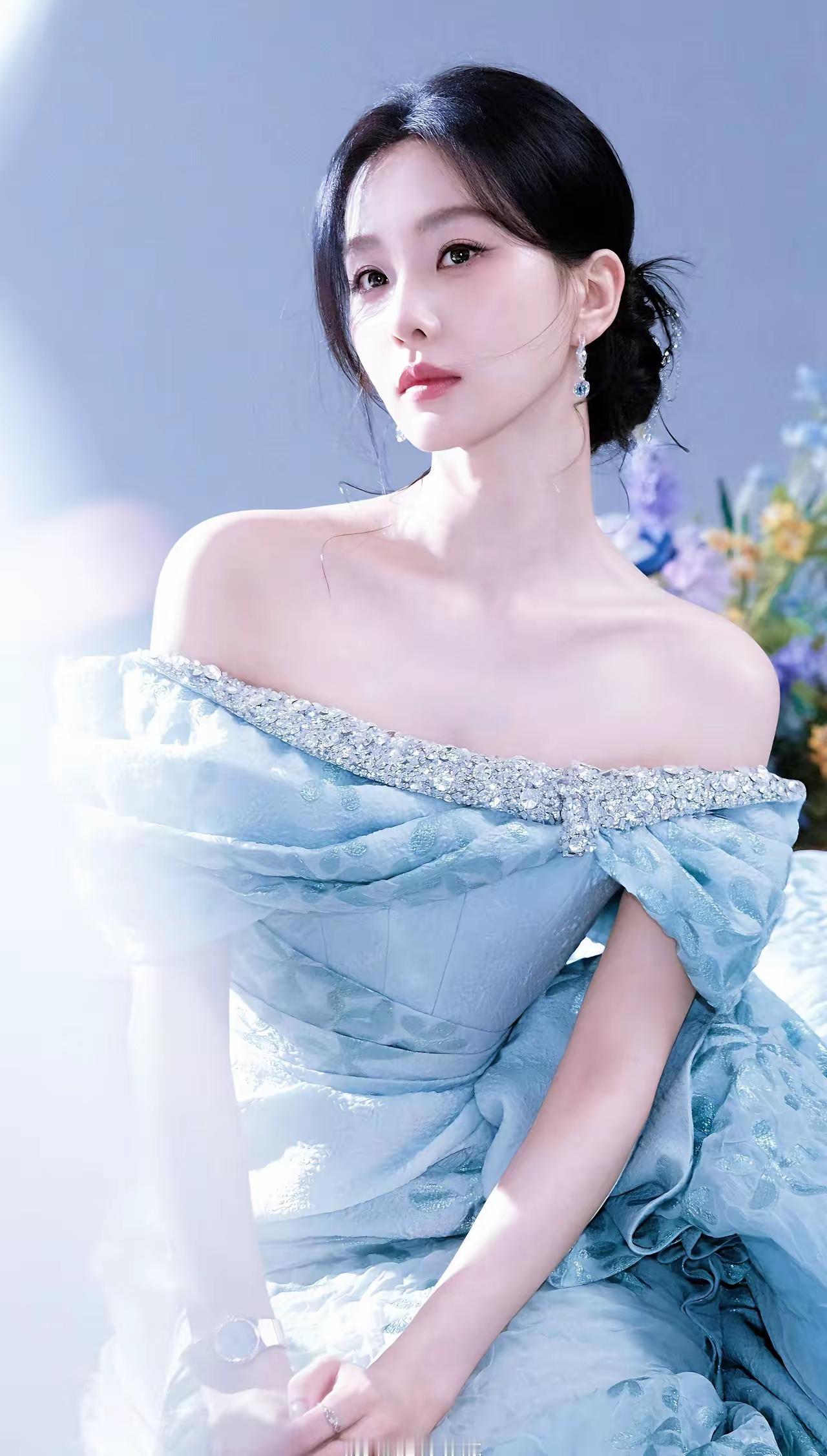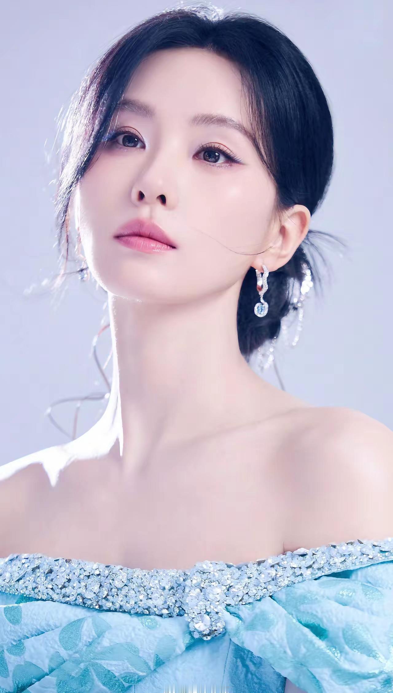 美女壁纸~刘诗诗,冰蓝色露肩礼服像揉碎了的月光,碎钻领口缀满星光,衬得颈肩线条清冽又优雅