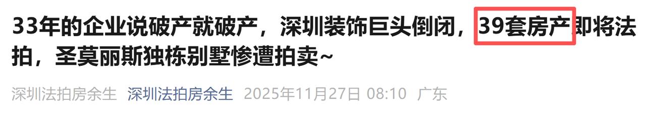 好惨,辛苦打拼33年的企业说破产就破产,去年39套房产被拍卖,不够抵债,这次又来9套~