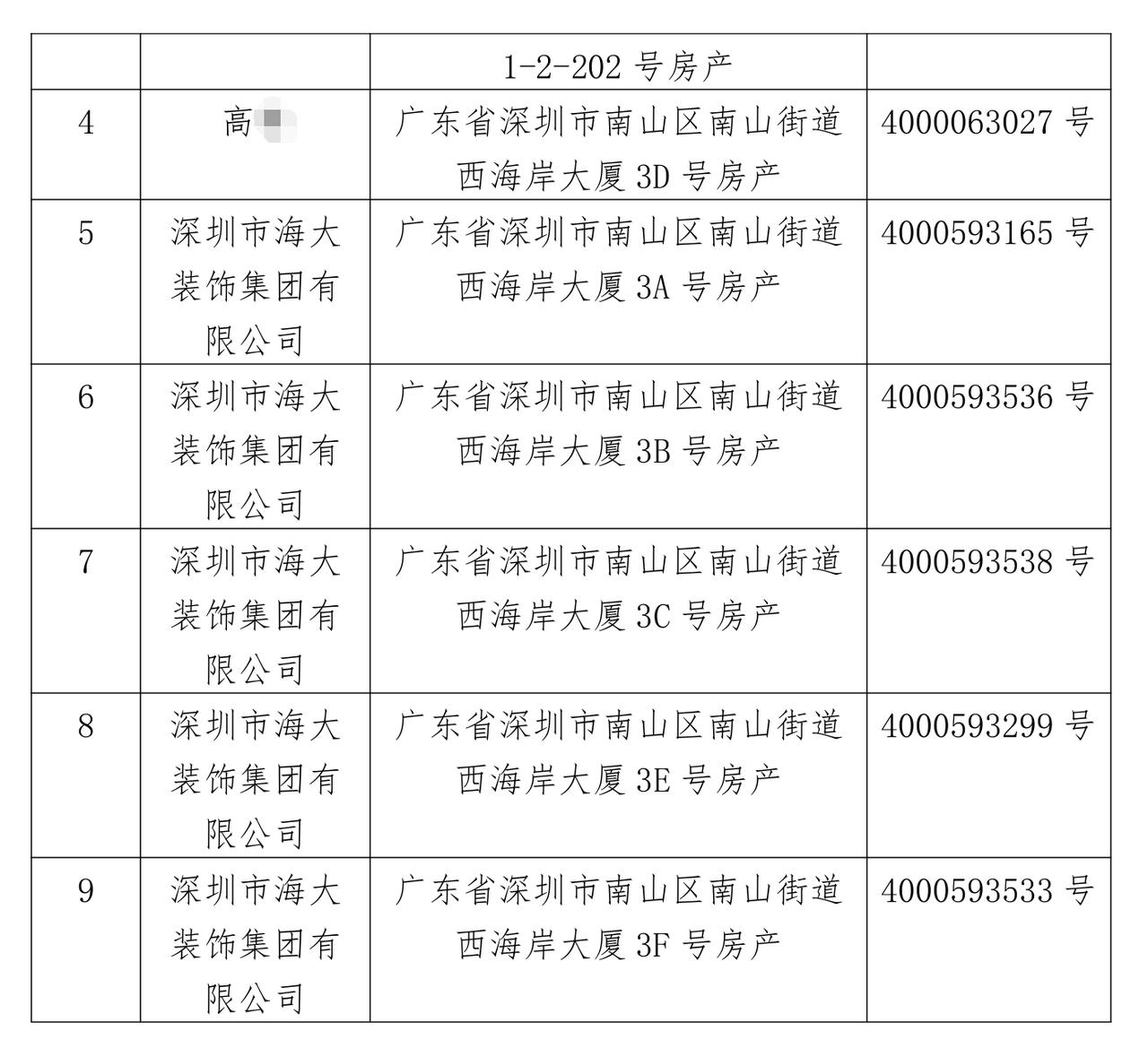 深圳成立46年,海大成立33年,业主辛苦打拼多年,涉及装饰、医疗、汽车等多个产业,因形势不好,公司破产,去年拍了39套,现在再上9套,房子拍了一批又一批~