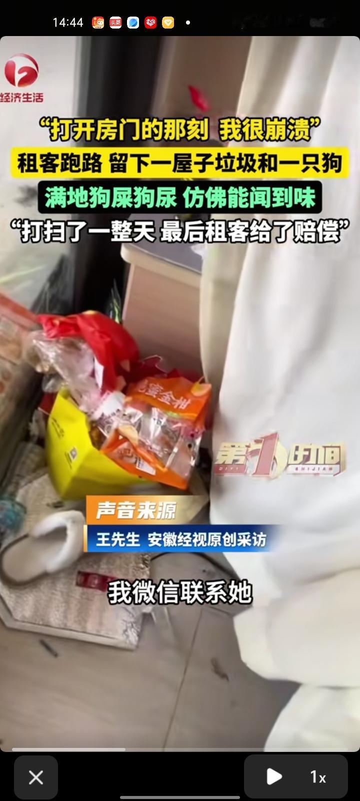 4月16日,山东威海。王先生把房子短租给一个女生,到了该交第二个房租时,人联系不上了,给她发微信她也不回。随后,王先生硬着头皮去开门,门一推开直接傻眼,里面有满地的狗屎和垃圾,味道隔着屏幕都能闻到,最扎心的是,角落里还有一只嘤嘤叫的小狗,眼神可怜巴巴。