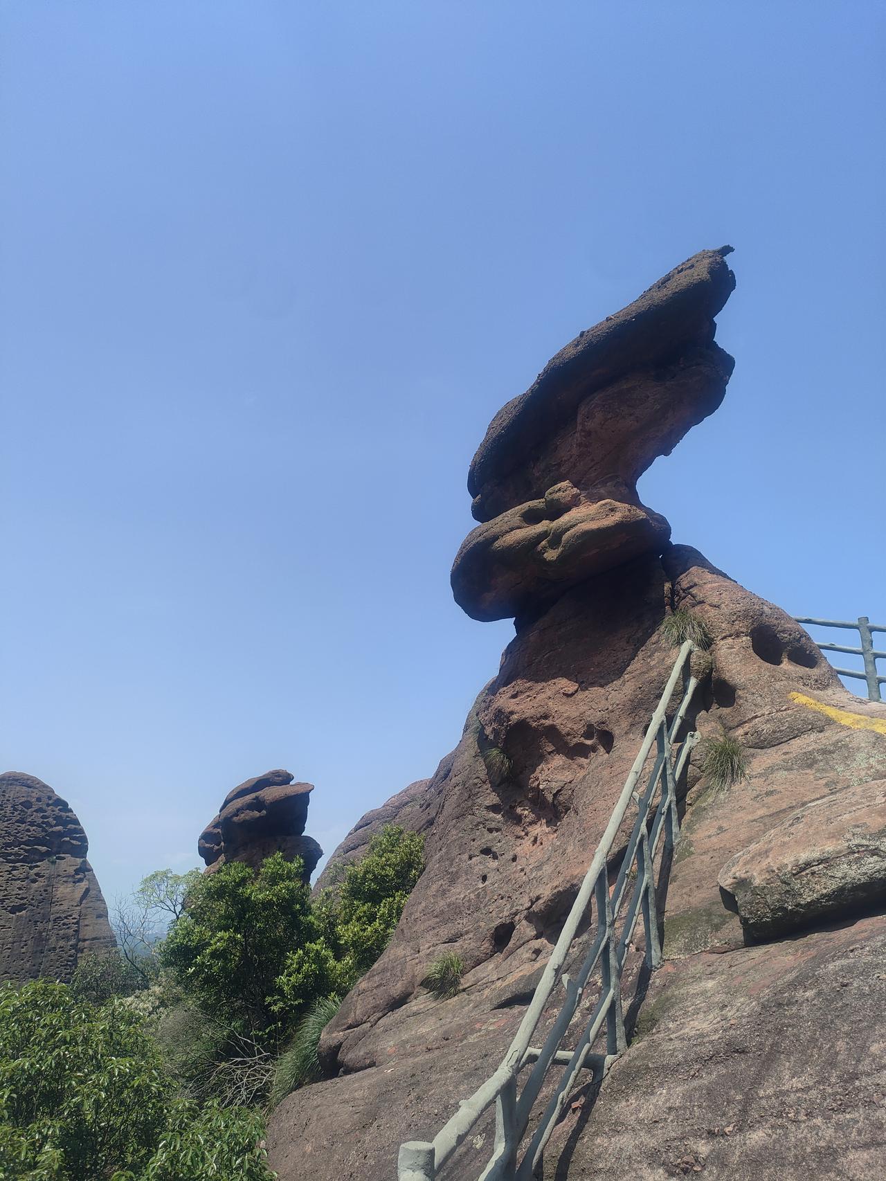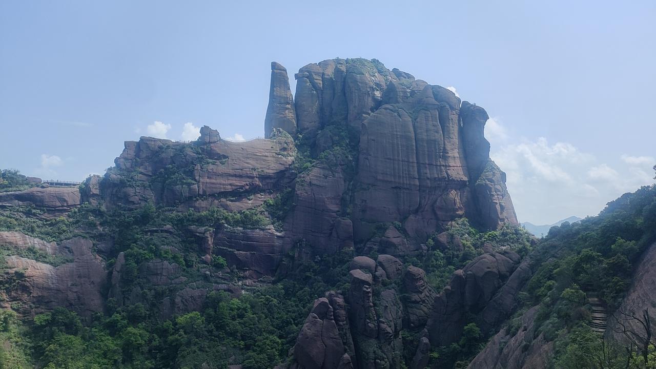 当年中国的七处丹霞地貌景区,联合申请世界自然遗产,广东的丹霞山福建的泰宁浙江的江郎山湖南的崀山贵州的赤水和江西的龙虎山-龟峰,这些年走了六处,就差上饶的龟峰还没涉足。龟峰也叫圭峰属于壮年期丹霞地貌,和广东丹霞山,福建泰宁金湖有点像,也是奇石林立。特别是龟形石,所以民间称圭峰为龟峰。龟峰爬起来并不感觉累,和它山势非一路往上有关,平缓向上,加上沿途设置的不少休息点,缓解了腿部的疲惫。周末的游客不少,不过圭峰玩起来门票不便宜,门票加景区交通车游船160元,走起来大概三个半小时到四小时。