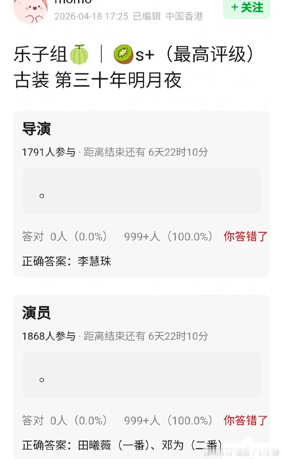 🍉《第三十年明月夜》:田曦薇(一番)、邓为(二番)