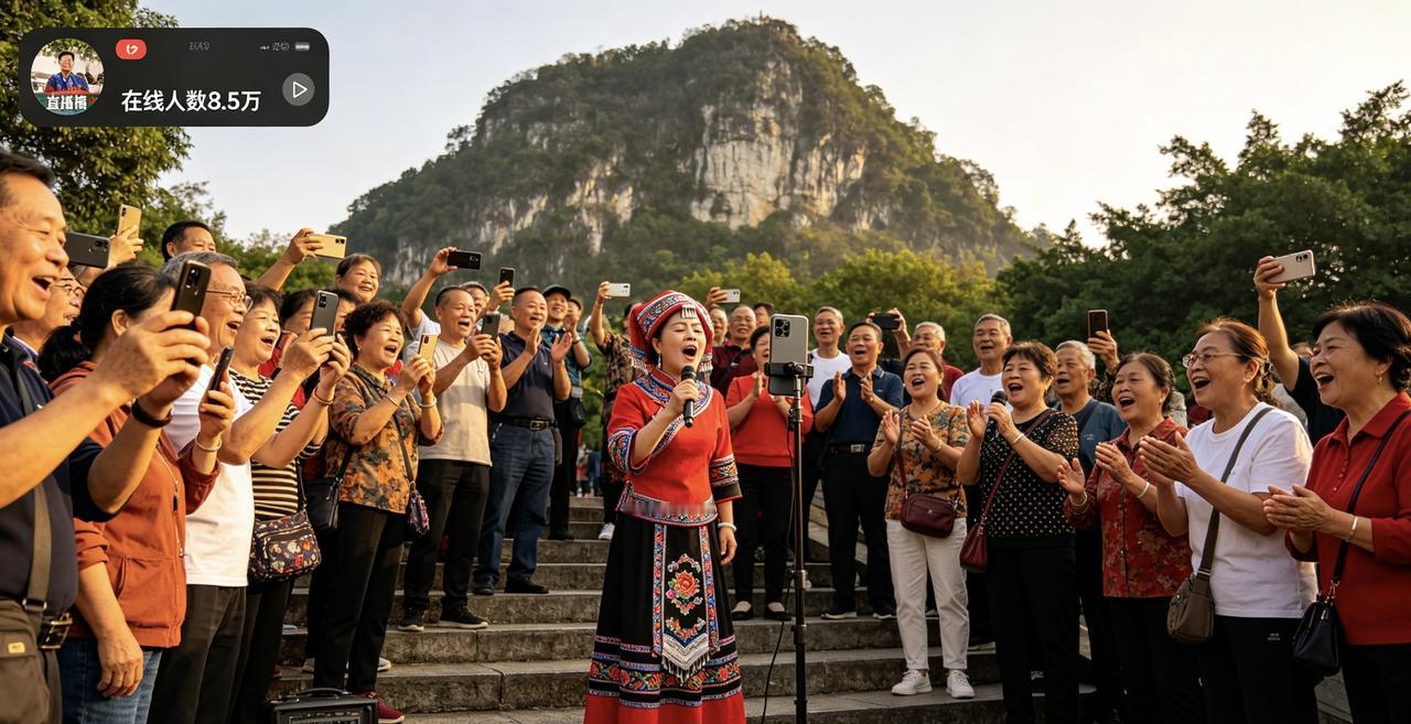 在柳州鱼峰山,网红山歌手“山三妹”一开嗓,线上直播就涌进了8.5万人。现场从贵州、广东专程赶来的歌迷不计其数,大家对山歌的热爱早已跨越了省界。有网友留言:“隔着屏幕都感觉喉咙痒,想跟唱!”
