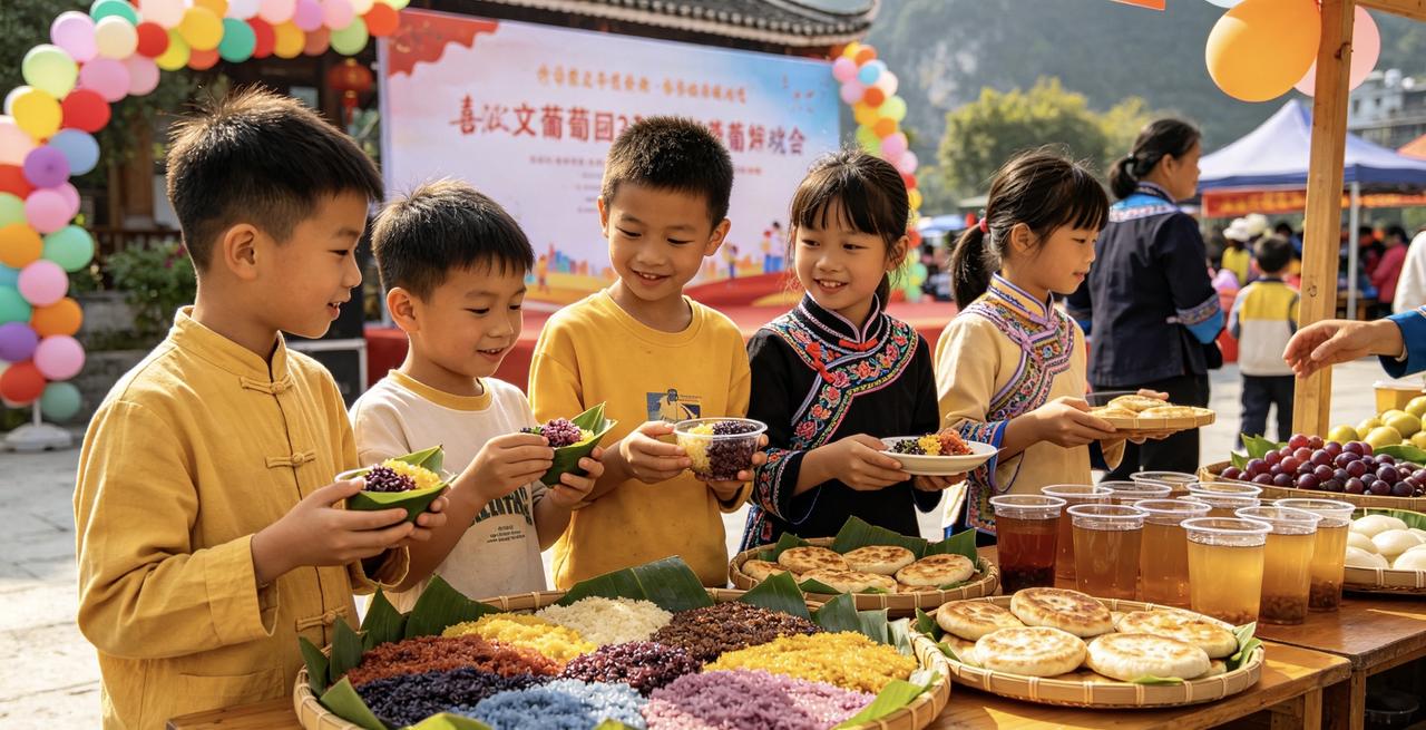 走进阳朔葡萄镇的“三月三”活动现场,五色糯米饭、清凉茶、葡萄烧饼一字排开,舌尖上的“三月三”香气四溢。孩子们在美食分享节上带来和家长一起制作的糯米饭、青团,颜值和美味双双在线。