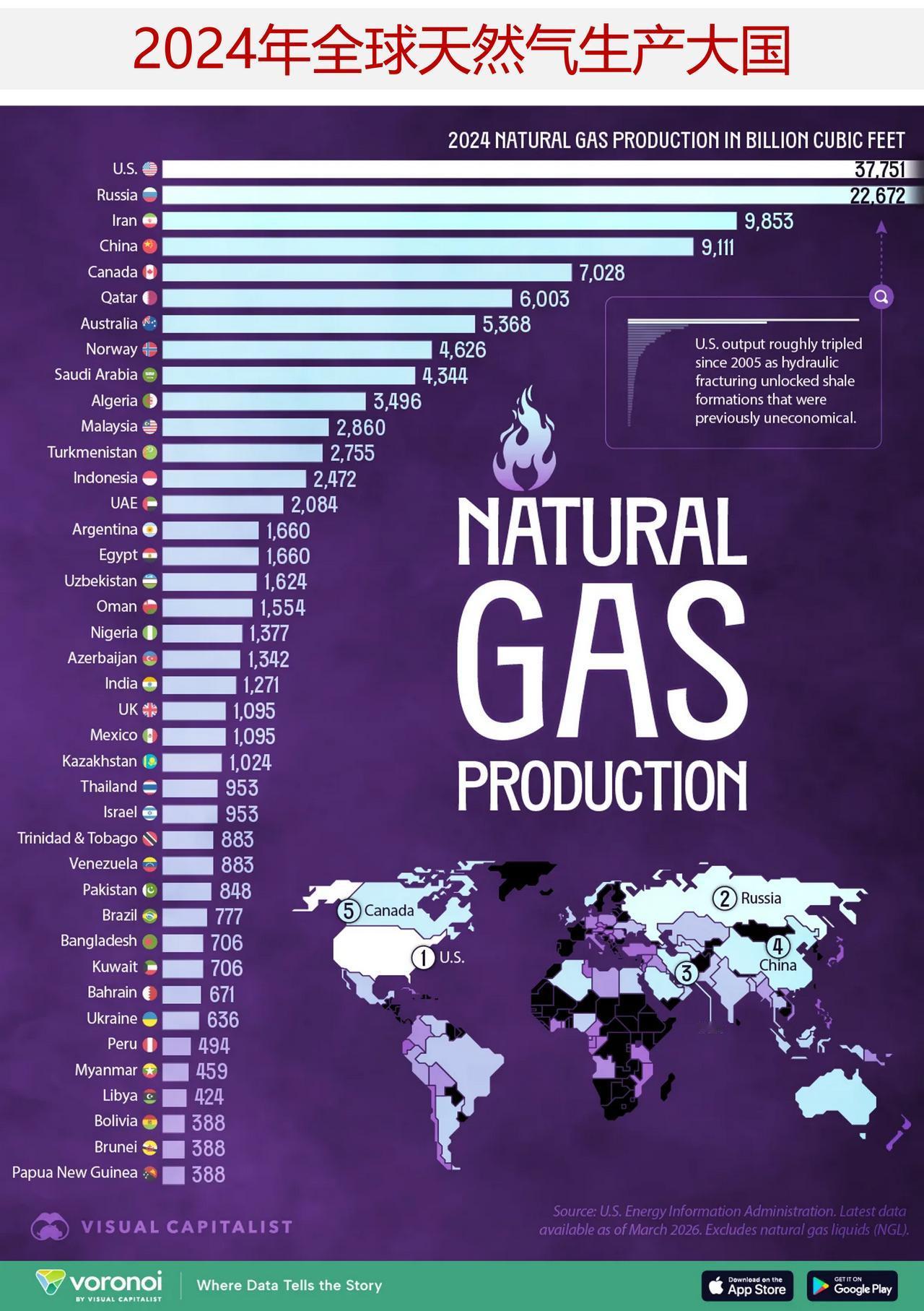 这些国家共同构成了全球天然气供应体系的核心,覆盖北美、欧亚大陆、中东以及主要液化天然气出口枢纽。