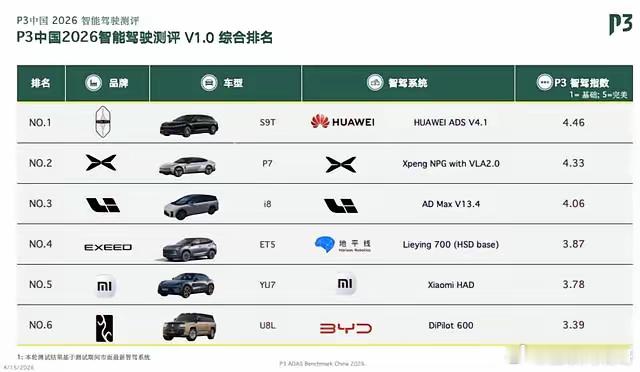 余承东太低调了,在国际知名咨询公司P3对中国智能驾驶的测评中,华为乾崑智驾ADS连续三年斩获第一,可是从来没见鸿蒙智行宣传过,余承东本人也从未主动提起这件事情。最近,国际知名咨询公司P3发布的《2026P3中国智能驾驶测评报告(V1.0)》显示,搭载华为乾崑智驾ADSV4.1系统的享界S9T,以4.46的高分位列榜首。至此,华为乾崑智驾已实现2024、2025、2026连续三年P3测评第一。P3集团源自德国亚琛工业大学,是全球知名的汽车与智能交通咨询公司,服务过大量国际主流车企、零部件供应商和科技公司,在智能驾驶(ADAS)领域拥有超过9年的国际测评经验,项目覆盖全球,其方法论被行业广泛认可,不是普通媒体或第三方机构的“民间测评”,更偏向于对真实用户体验和技术落地能力的评估。P3对中国智能驾驶的测评体系源自德国标准,沿用了P3德国的ADAS测评框架,同时针对中国路况,专门重新定义了300多个测试用例,覆盖城市通行、无保护左转、突发障碍避让、合规行驶等高频复杂场景,在北京真实开放道路实测,还原用户真实用车体验。由此可见,华为乾崑智驾ADS能连续三年在P3测评中斩获第一,证明其在复杂路况的感知、决策与控制表现上极为均衡突出,不是余承东自己吹牛。