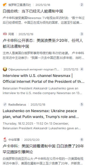 美国这二十来年一直在琢磨怎么遏制中国,可卢卡申科一句狠话直接戳破了这个泡泡:你们至少浪费了20年。眼下已经没人能摁得住中国了。