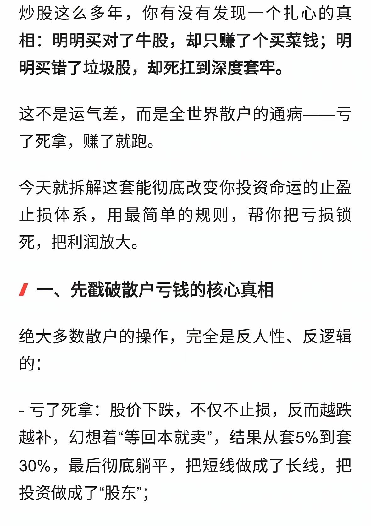 炒股最大的死穴:亏了死拿,赚了就跑!反向操作才能赚大钱