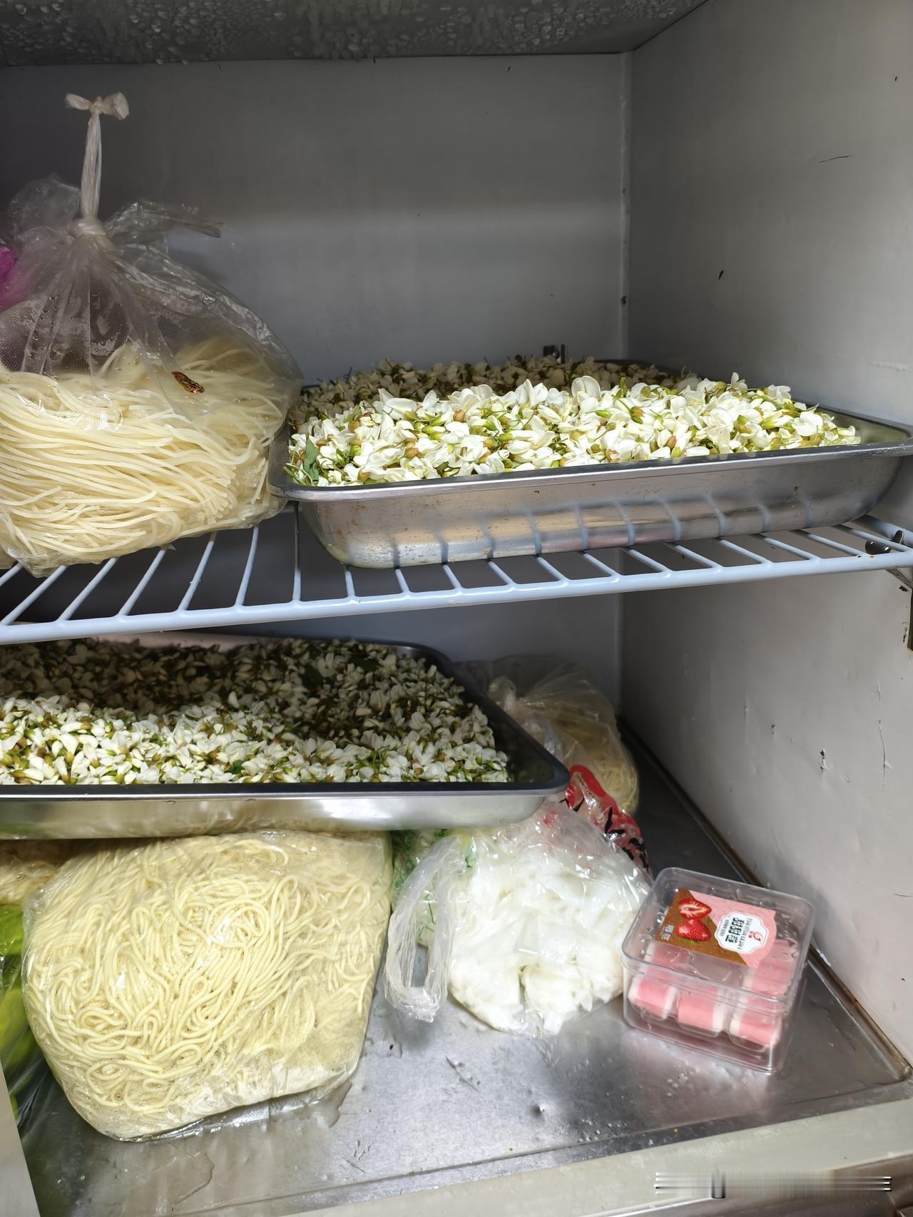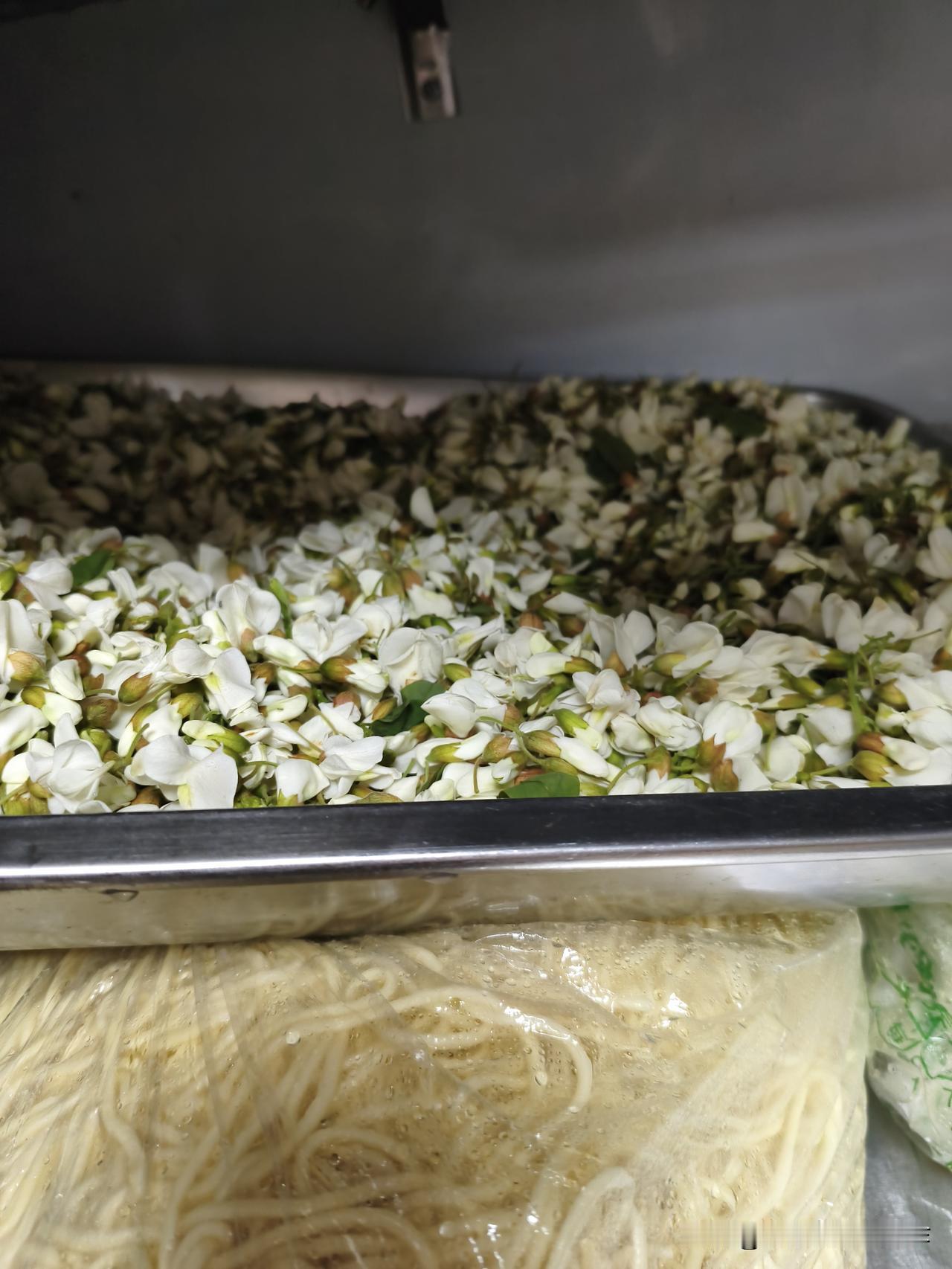 原来,是亲家在老家寻了好几个村子,才弄到这些洋槐花,她为了让我们吃到这口鲜,还特地寄的那种快点的快递。