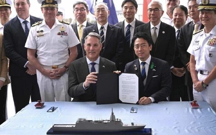 4月19日,据社交网站报道,近日,日本向澳大利亚出口通用护卫舰举行签字仪式,日本采用最先进护卫舰设计方案,首舰将于2029年交付澳大利亚海军。