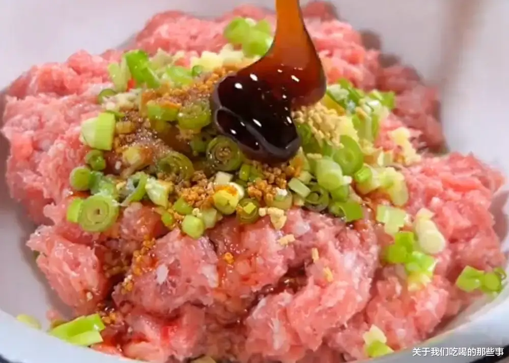 第一步,先将猪肉剁成肉馅,再加入姜末、葱末、盐、生抽、蚝油、味精、白胡椒粉、鸡蛋,用筷子朝着一个方向不停搅拌,直至上劲,放一边备用。
