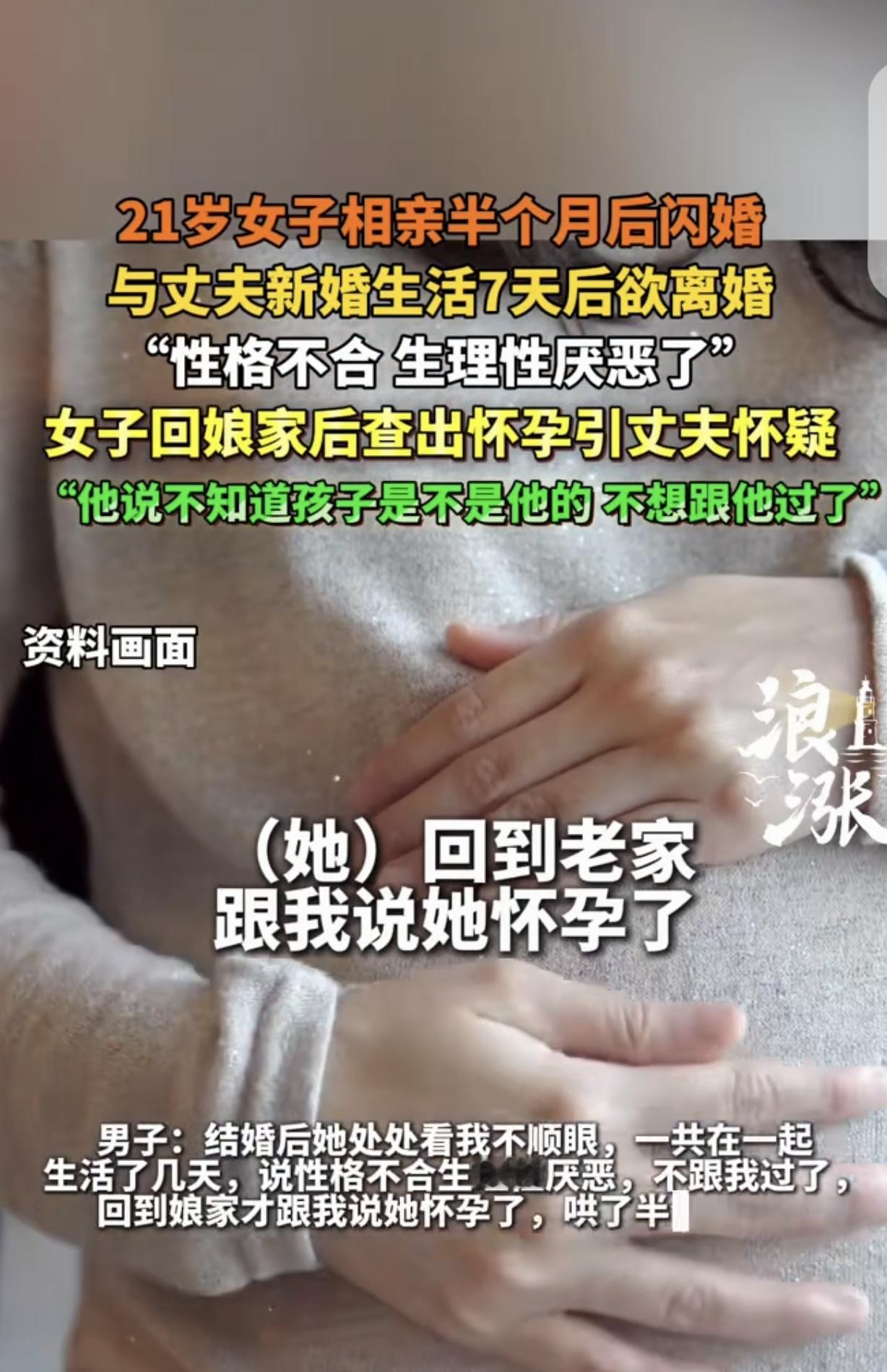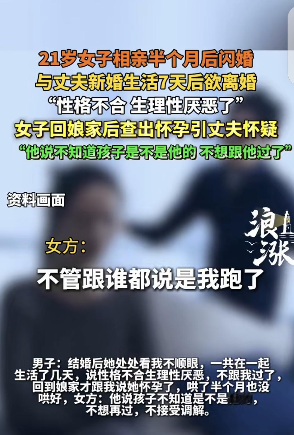 “这就是闪婚的后果!”河南驻马店,一02年男子,跟一05年女子相亲,2人认识才半个月,女子就表示看上男子了,要嫁给他,男子花40万结了婚,两人闪婚才过了7天,女子竟看男子不顺眼,产生生理性厌恶,直接跑了不跟他过了,女子回到娘家又说怀孕了,男子怀疑孩子不是他的。