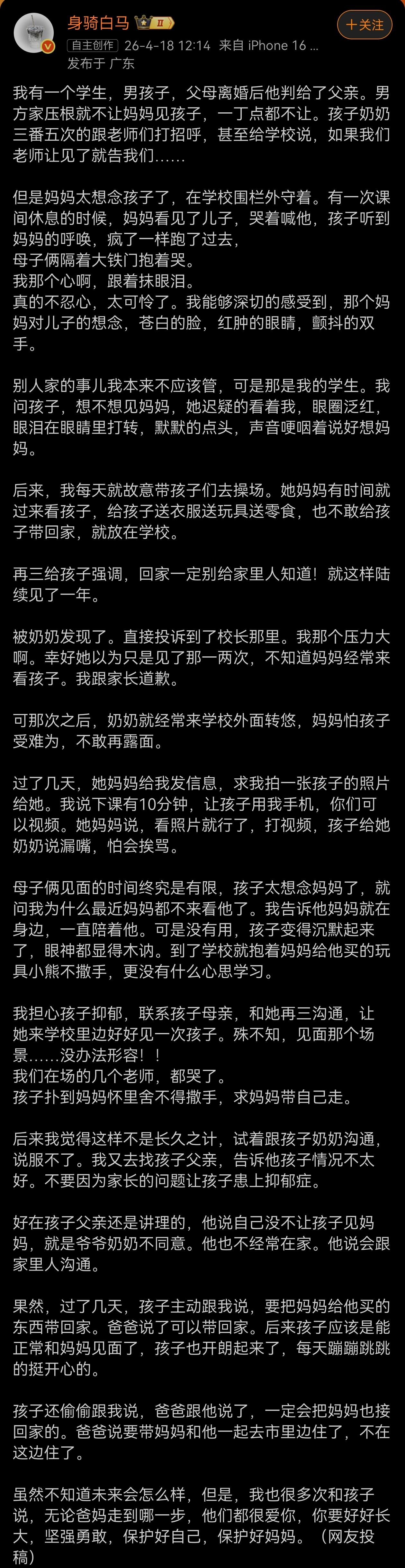 这个故事看得泪眼婆娑。父母离婚后孩子最可怜。