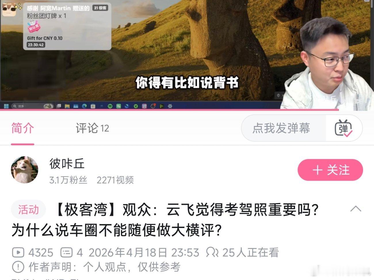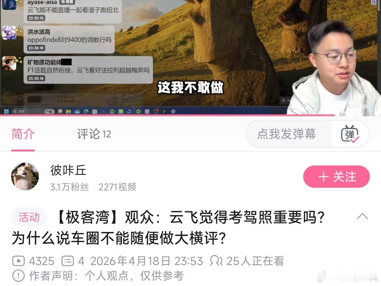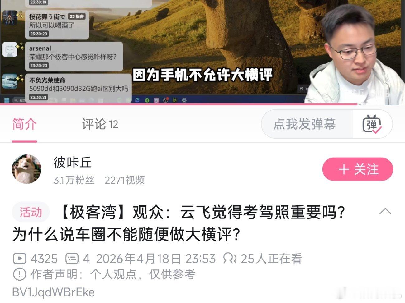 云飞吐槽说之前手机大横评下降可能还算是一个误会,但车圈是真的不允许做大横评,除非你有强大的背书。还举例说强如懂车帝背景是字节,之前视频也被下架了。