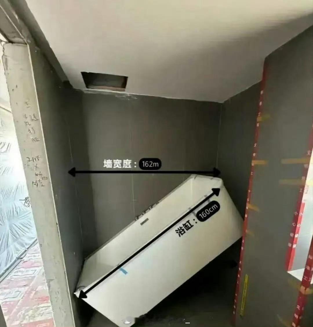 卫生间的宽度是162厘米,但浴缸却只有160厘米,怎么就塞不进去呢?这是为啥啊?